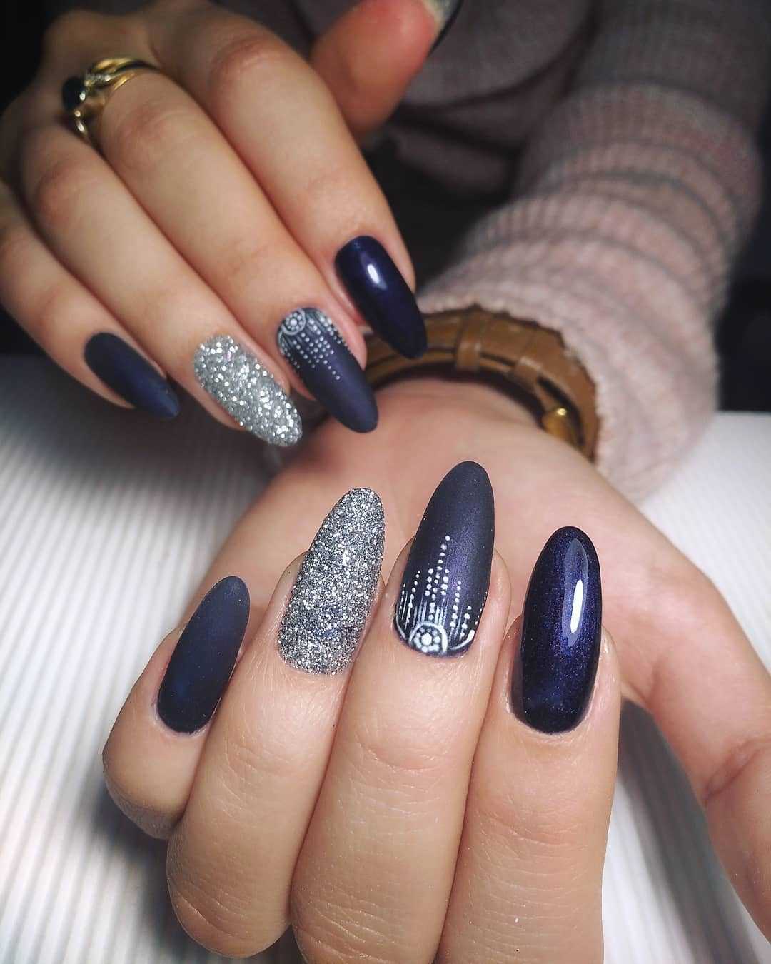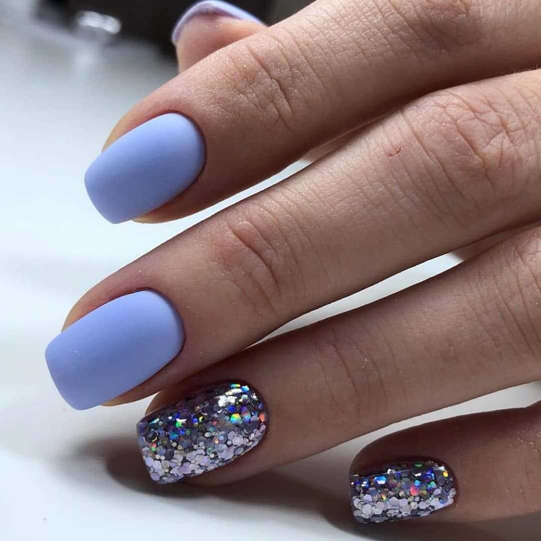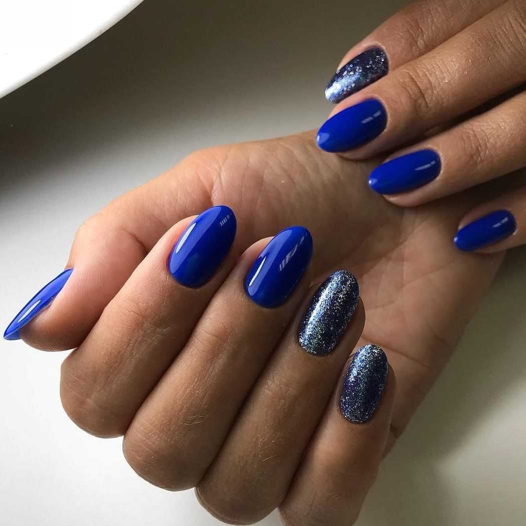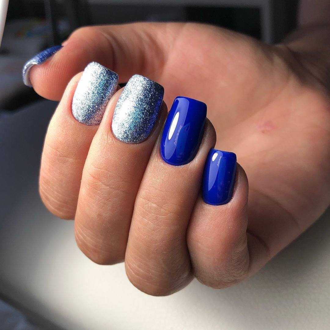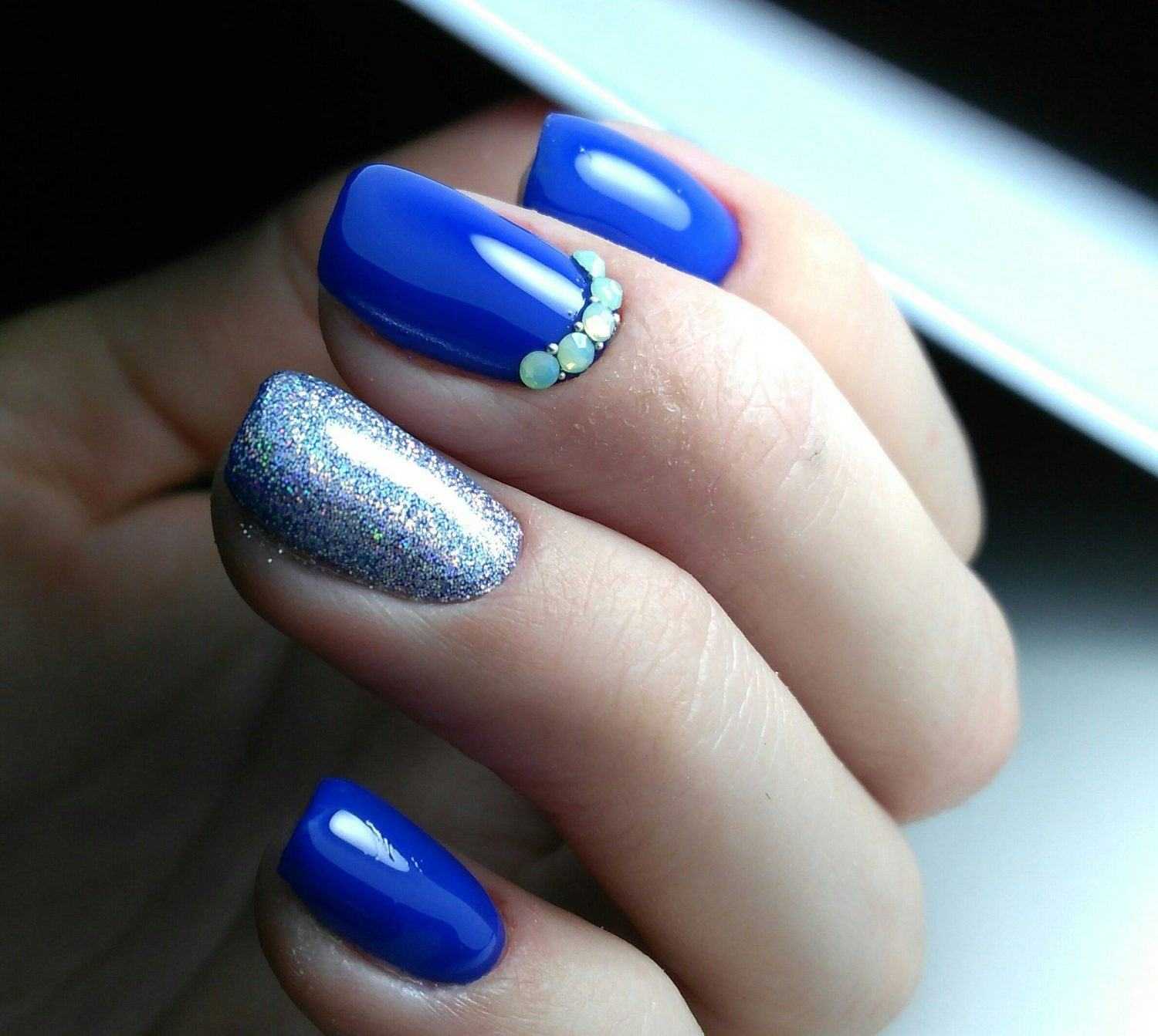 Непревзойденно синий цвет сочетается с матовым покрытием. Для создания более праздничного дизайна можно добавить немного блесток или страз.