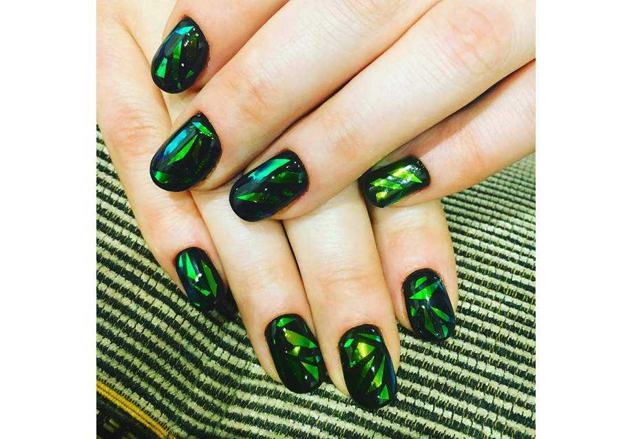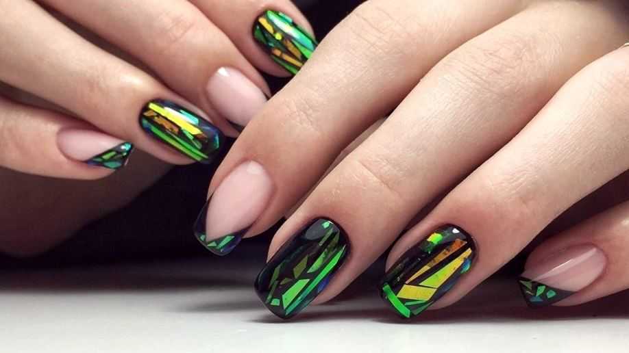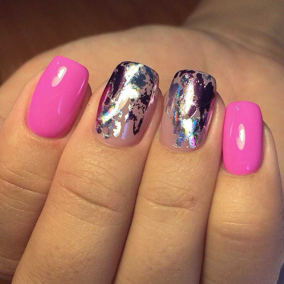 Если хочется сделать ногти еще более яркими, воспользуйтесь втирками – наносите средство на безымянные или указательные пальцы в качестве интересного мерцающего акцента. Пленительным будет маникюр с вырезанными из фольги бабочками, сердечками, геометрической абстракцией. “Битое стекло” с матовым эффектом – еще один модный тренд, к которому невозможно остаться равнодушной.
