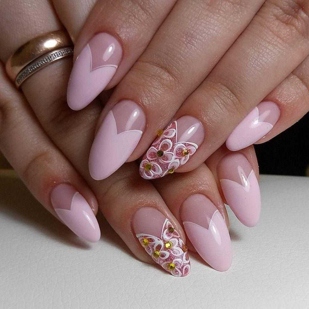 А вот для вечернего весеннего маникюра дизайн 2019 сезона предлагает использование любого варианта со стразами.При выполнении маникюра в особом случае или праздничном выходе в качестве декора можно использовать различные украшения помогающие маникюру стать произведением искусства.