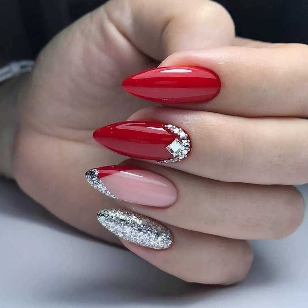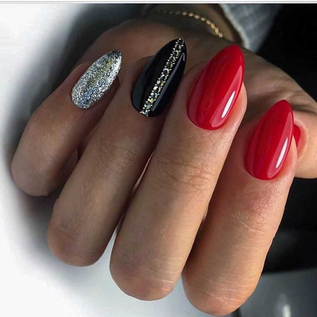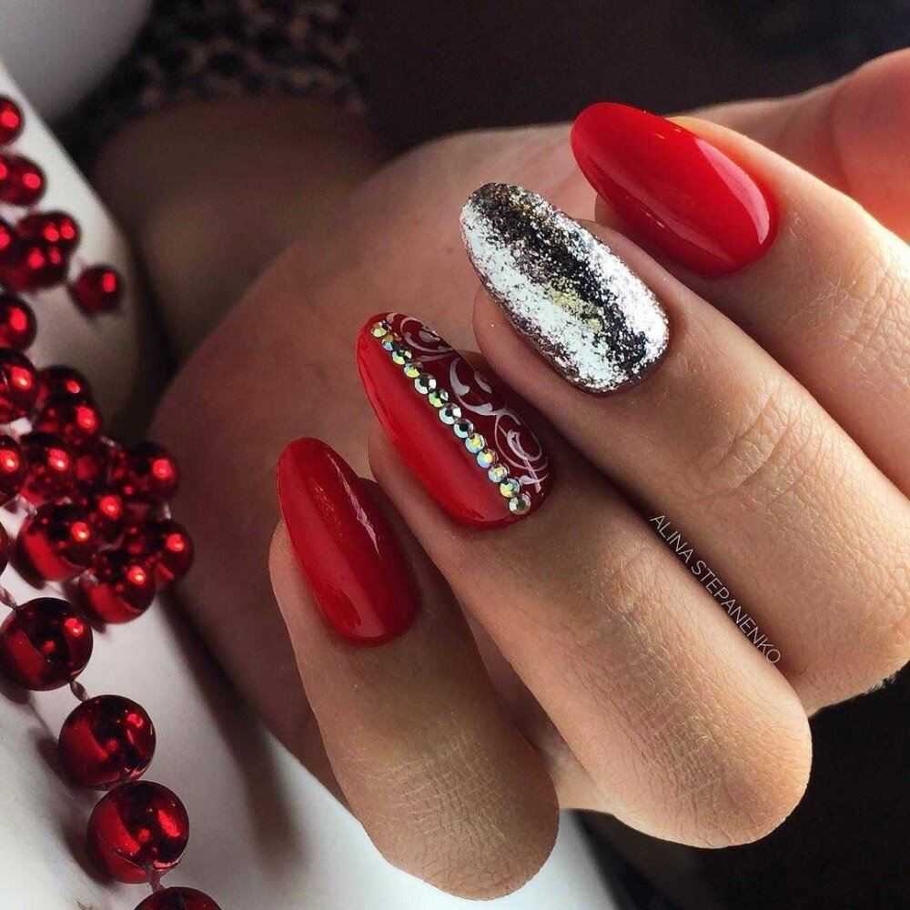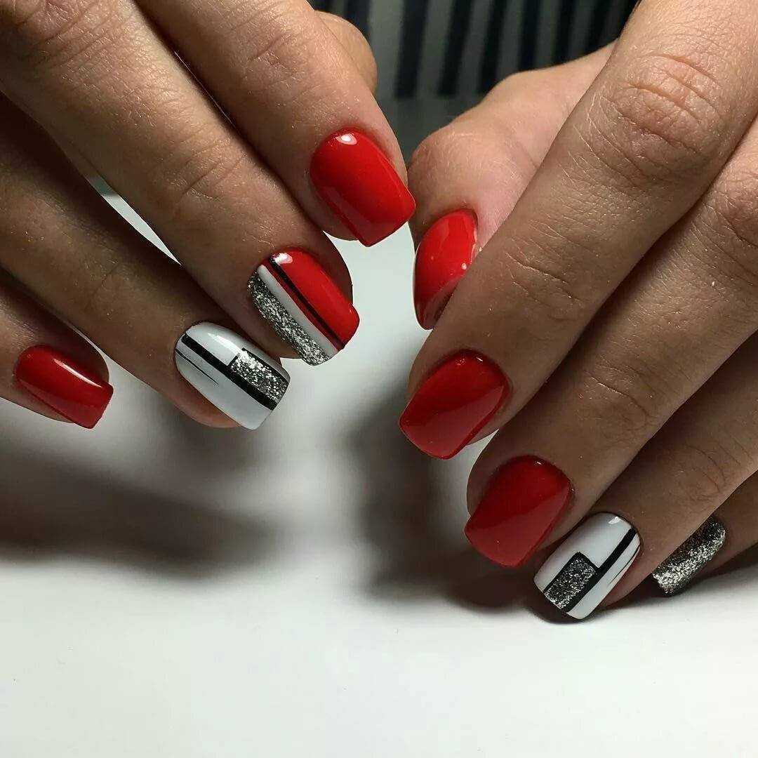 Ярко-красный маникюр — классика, которая вряд ли когда-то выйдет из моды. В 2019 году в тренде сочетание красного и белого, с блестками, черного. Сочетание красного и белого цветов даёт возможность создать элегантный дизайн ноготков. Можно создавать нейл арт, применяя: