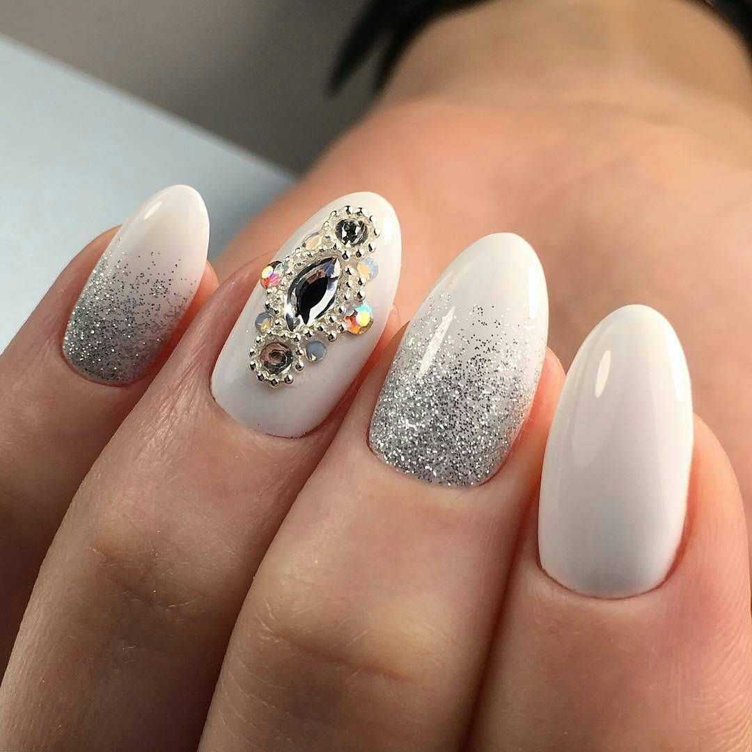 Стразы и украшения на изысканном маникюре весной 2019 года