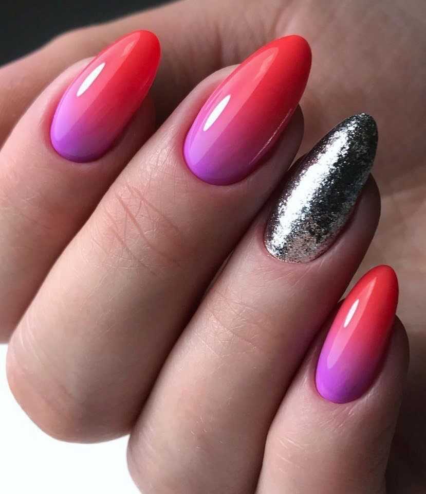 Актуальными на лето 2022 будут ноготки оформленные разными цветами гель лаков. Разноцветный маникюр может быть в оттенках одного цвета или совершенно разных. Красиво смотрятся сочетания неоновых тонов в дизайне, сразу возникает ассоциация с пляжем, купальниками и отпуском, желательно на море.