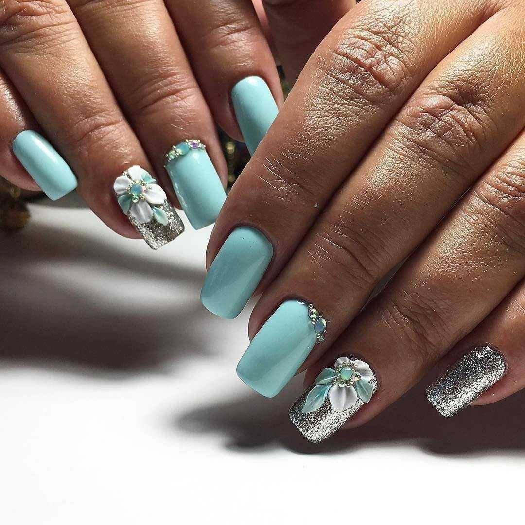 В тёплое время года будут популярны нежные цвета голубого тона. В качестве весеннего дизайна на короткие ногти довольно романтично и нежно будет выглядеть голубой лунный маникюр, френч или градиент. В бирюзовый нейл-арт можно добавлять рисунки бирюзового, мятного и пастельного оттенка.