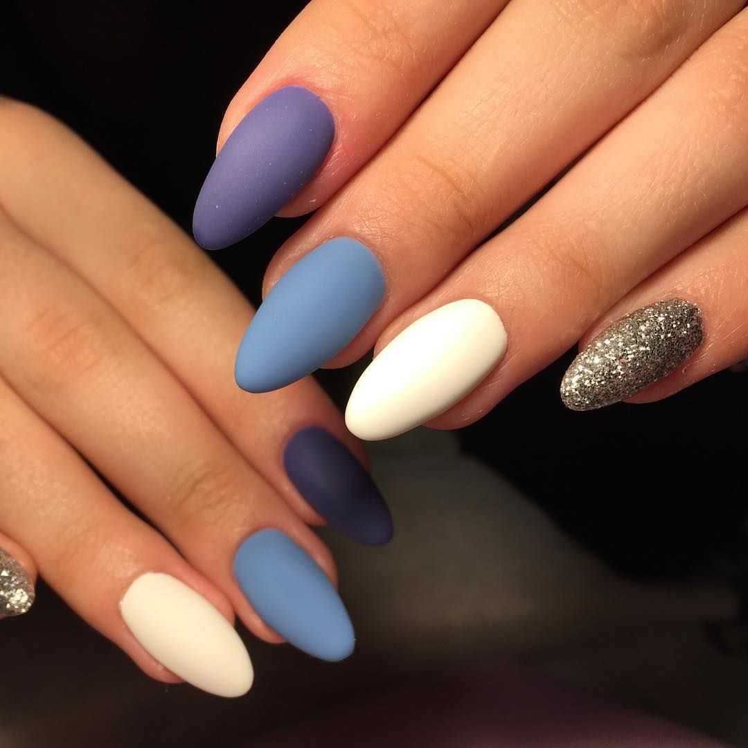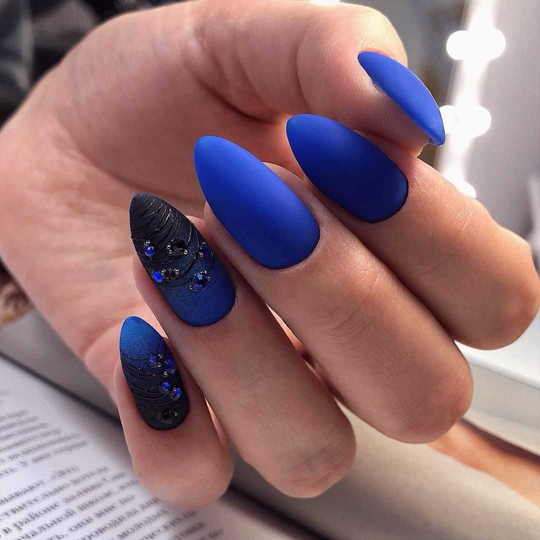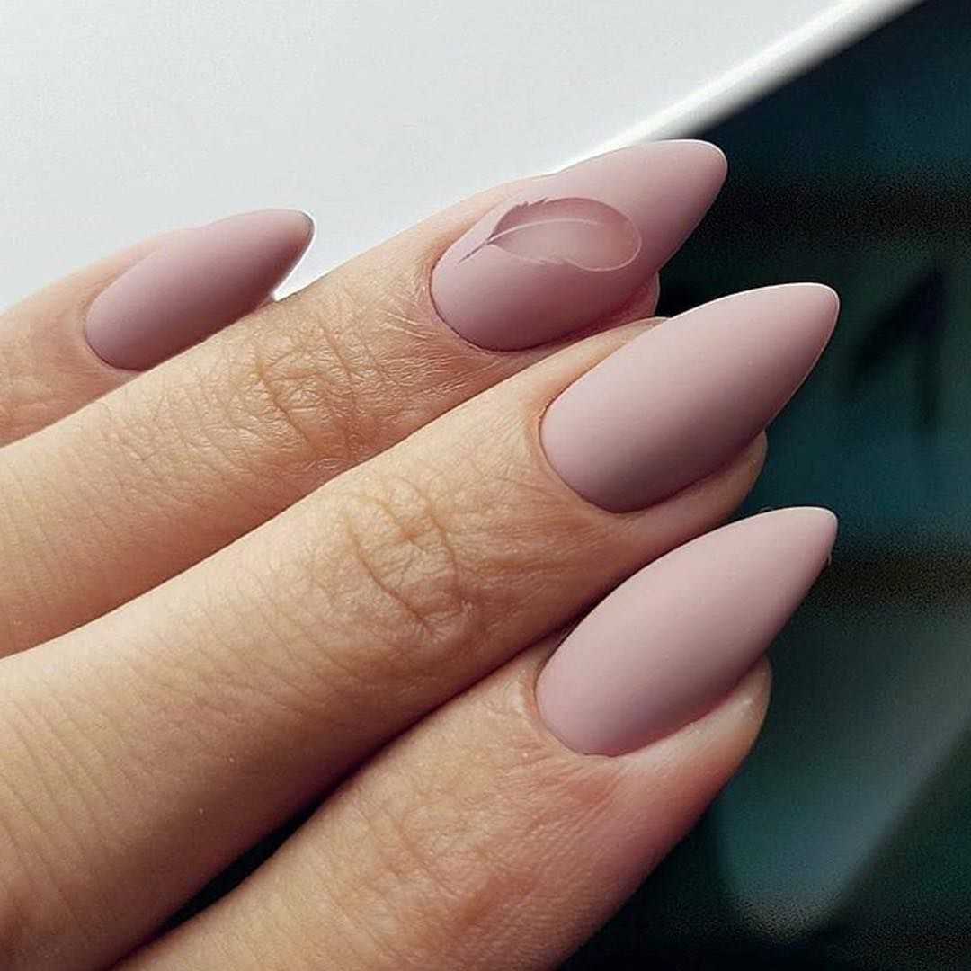 Матовое покрытие на миндале приятно не только на ощупь, но и вызывает аналогичные «теплые» ассоциации при виде столь эффектного маникюра. Красивый вечерний дизайн ногтей в матовом исполнении будет неотразим со стразами, блестками, пайетками и камифубуки. Для дневного дизайна лучше отдавать предпочтение нюдовым тонам. Также будет актуален матовый миндальный маникюр с яркими и неоновыми гель-лаками.