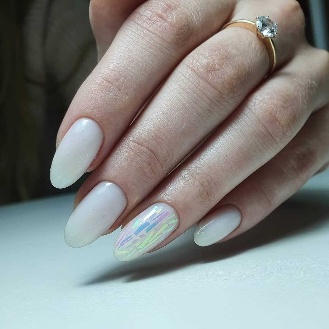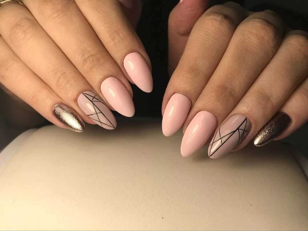 Как вариант, можно добавить на один или два ногтя несколько абстрактных геометрических фигур. Или украсить пару ноготков фольгой. Можно добавить бульонок или блесток в дизайн.