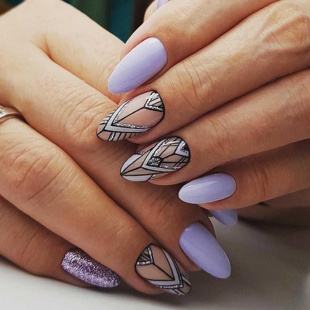 Сочетание Абстрактных рисунков с различными геометрическими фигурами делает маникюр с одной стороны стильным и строгим, а с другой стороны, абстракция придает ему свободы и легкости. Можно бесконечно фантазировать с этим видом дизайна и делать абсолютно уникальные рисунки на ногтях.