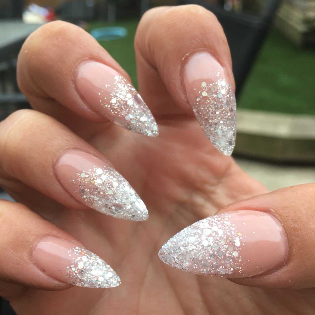 Если душа просит чего-то нового в зимнем маникюре, просто добавьте в него блесток на кончиках ногтей. Чем больше глиттера, тем эффектнее получится дизайн. Для большего эффекта можно сделать френч косым или голливудским.