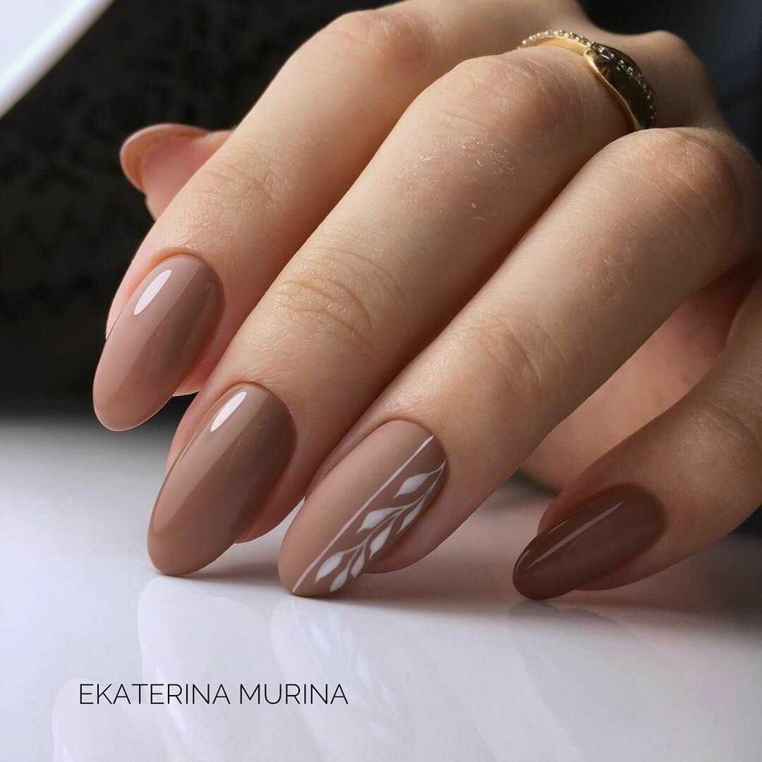 Универсальные оттенки коричневого как ни один другой цвет уместны для завершения осенних аутфитов. Коричневый добавляет ногтям глубины, особенно с различными вариациями фактур – глянцевой или матовой.