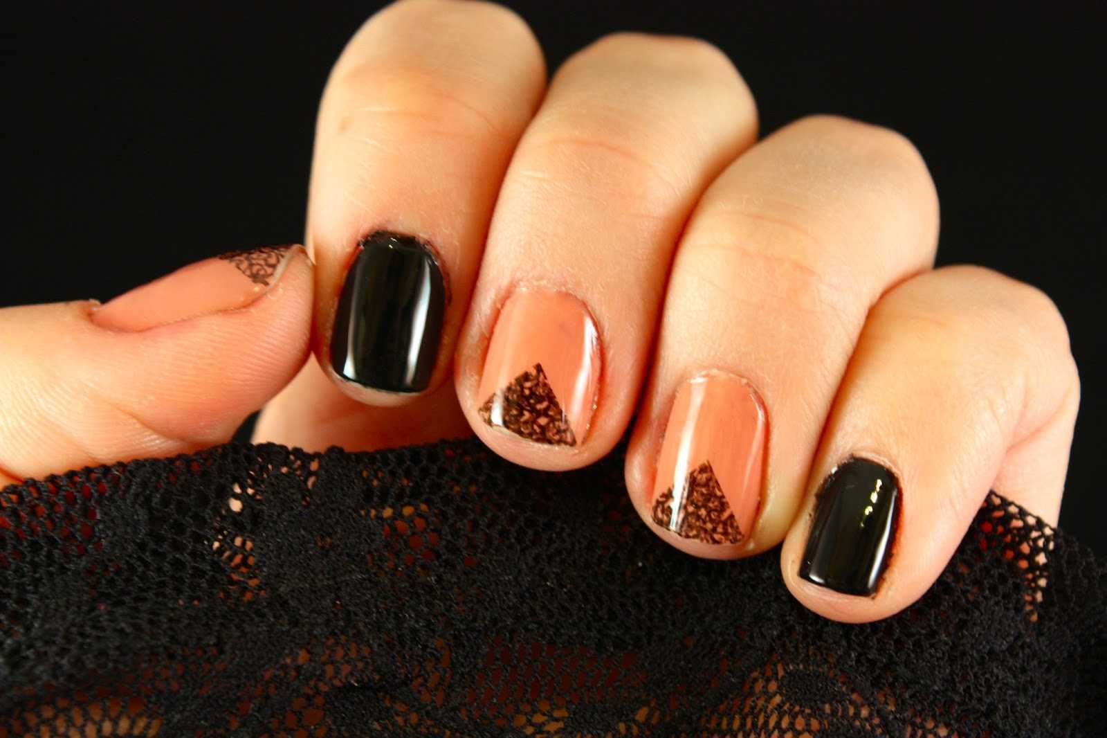 Стоит учитывать сам оттенок. Если это пудровые, едва заметные гель-лаки, то они нуждаются в контрастных узорах черным, синим или другим темным лаком. Добавьте к дизайну геометрические фигуры, линии, ромбы. Чтобы нейл-арты выглядел еще изысканнее, чередуйте матовую и глянцевую текстуру на одном ногте.