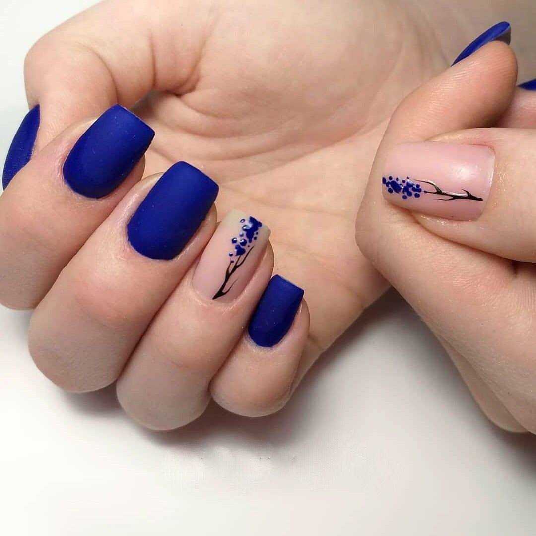 Маникюр, выполненный в синих оттенках, уместно будет смотреться абсолютно в любой сезон, поскольку большинство прекрасных цветовых решений в природе выполнено в этих тонах. Свою популярность синий матовый дизайн ногтей завоевал и из-за того, что с каждым годом мода на джинсовый стиль возрастает.