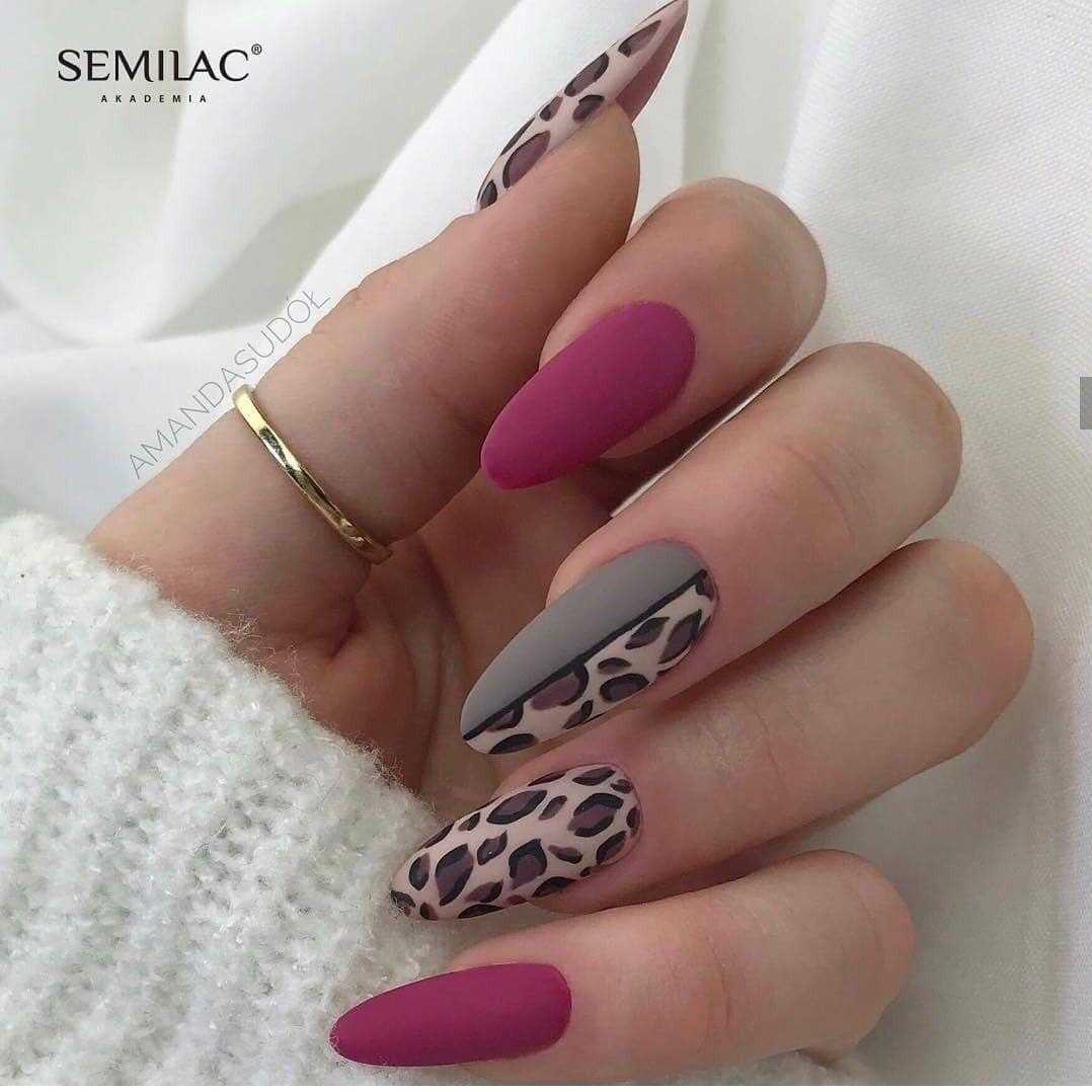 Очень красиво смотрятся матовые варианты маникюра с леопардовым рисунком различного вида.