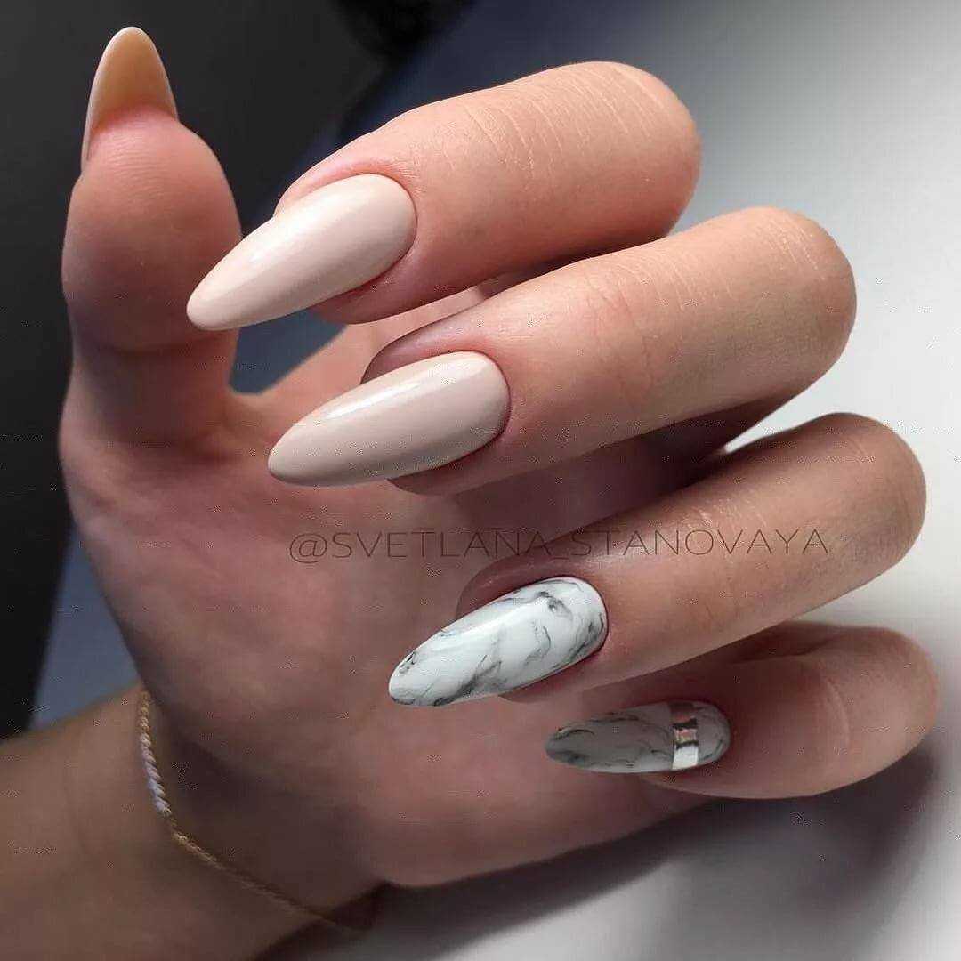 Мраморный дизайн ногтей миндаль новинки стильные 2021-2022 весна