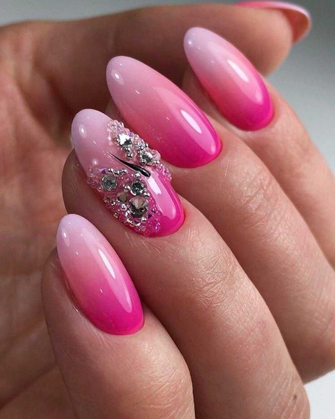 Стразы, рисунки и блестки на овальных, круглых ногтях: фото дизайна 2021-2022