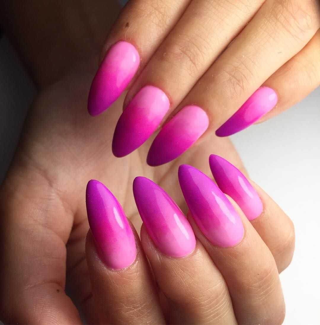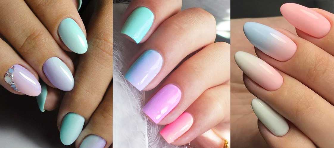 Эффект градиента — вечный тренд в мире нейл-арта. Он создается путем мягкого смешивания нескольких оттенков лака. Красивый и нежный вариант на лето — сочетание розового и голубого. Переход может быть как вертикальным, так и горизонтальным.