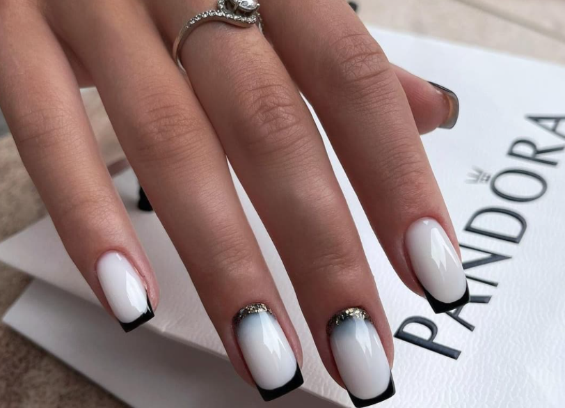 Хотя летом главными остаются яркие цвета, черный и белый никогда не выходят из моды. Для любителей шикарных, универсальных ногтей для любого случая эта двухцветная идея безупречна.