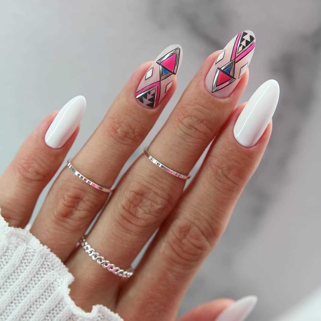 #6 Маникюр на миндальные ногти с абстрактным дизайном 2020