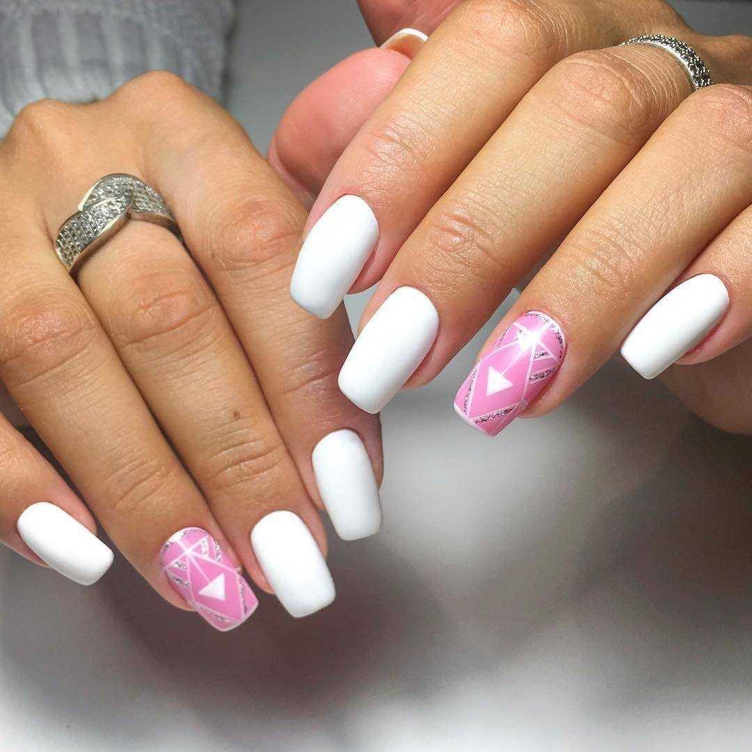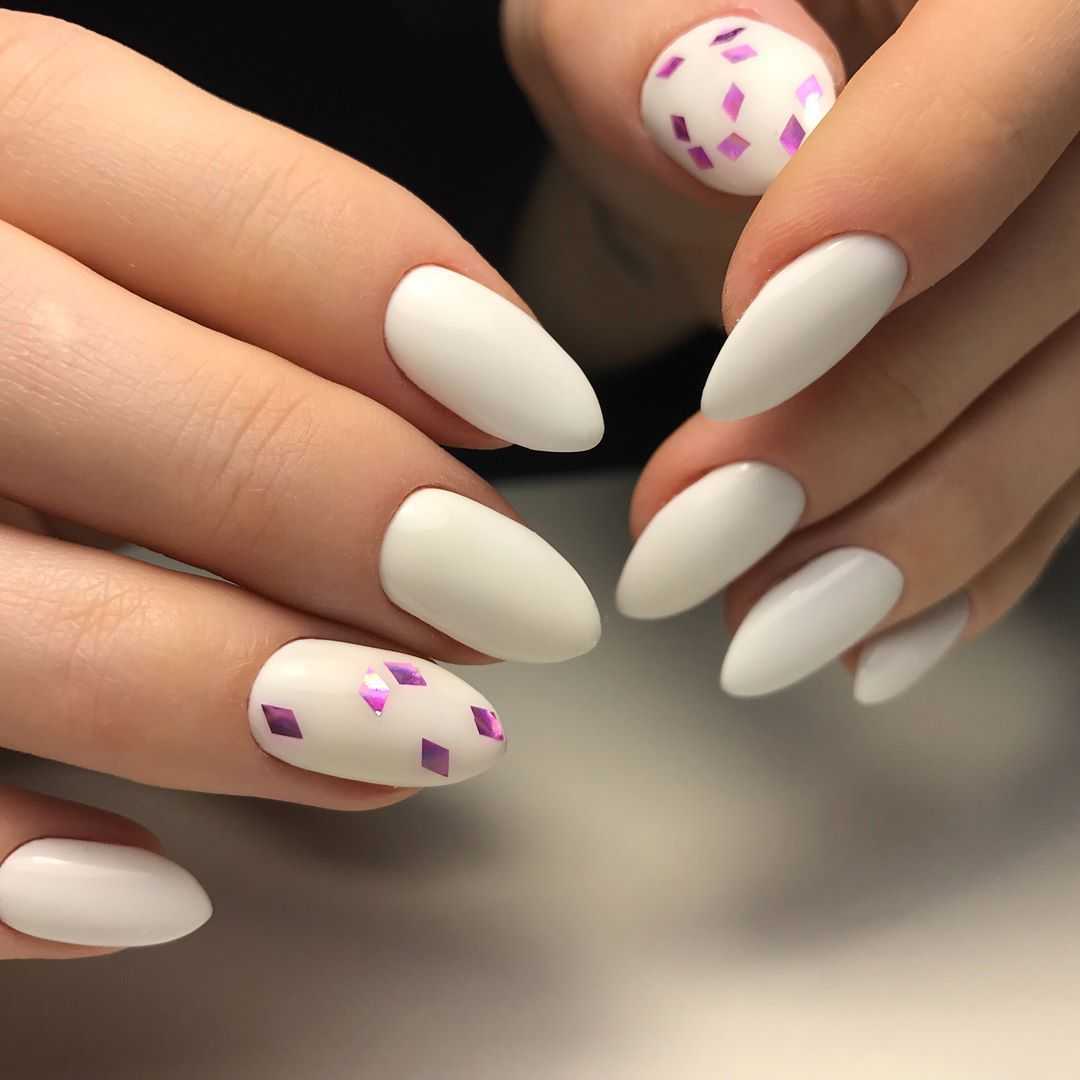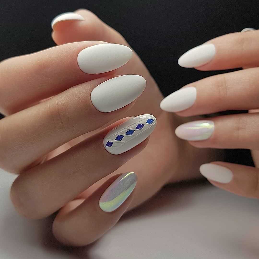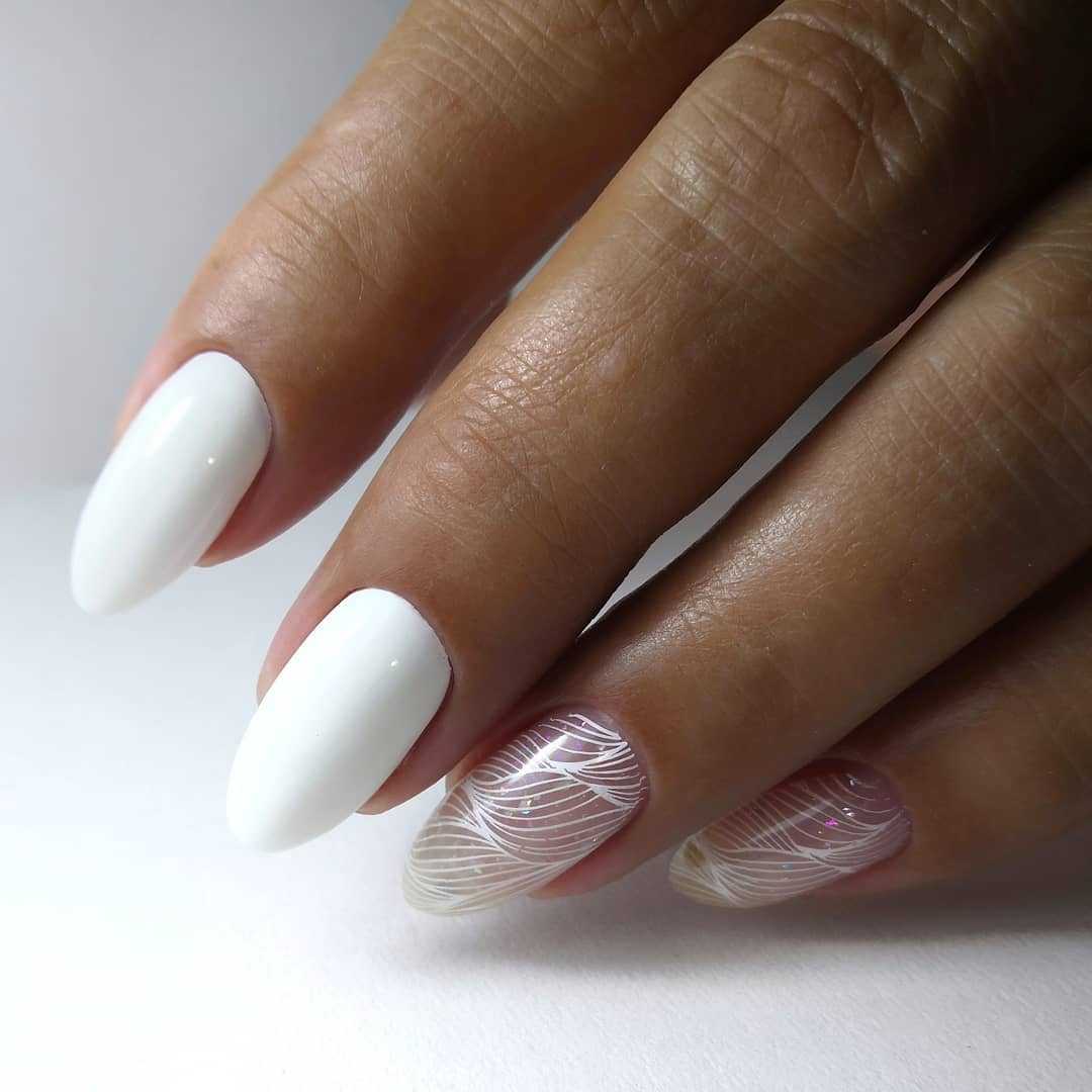 Как видите, белый маникюр может выглядеть совершенно по-разному. В данном случае играет роль не только выбранный дизайн, но и наличие дополнительных деталей. Экспериментируйте с различными вариациями покрытия и тогда оформление ногтей будет выглядеть стильно.