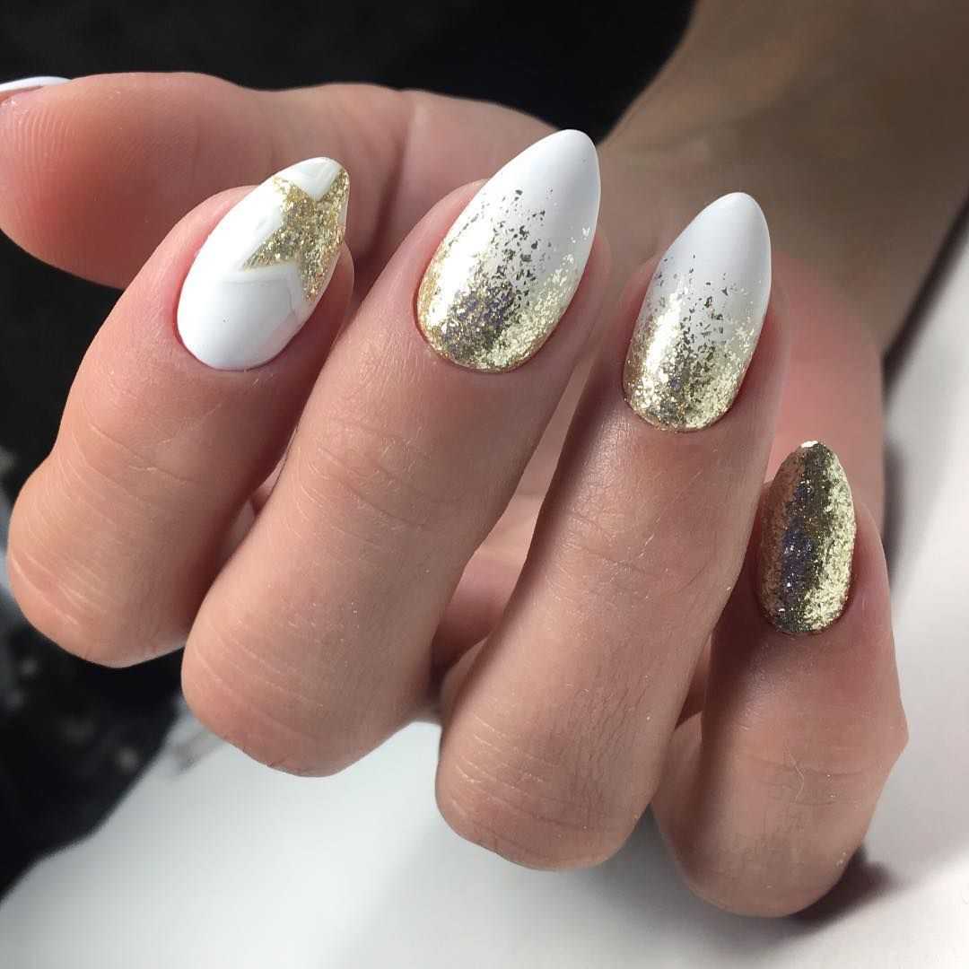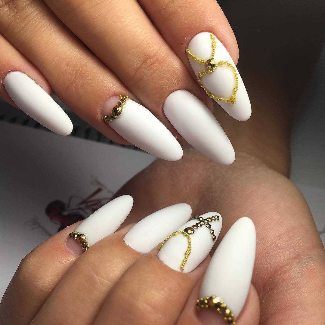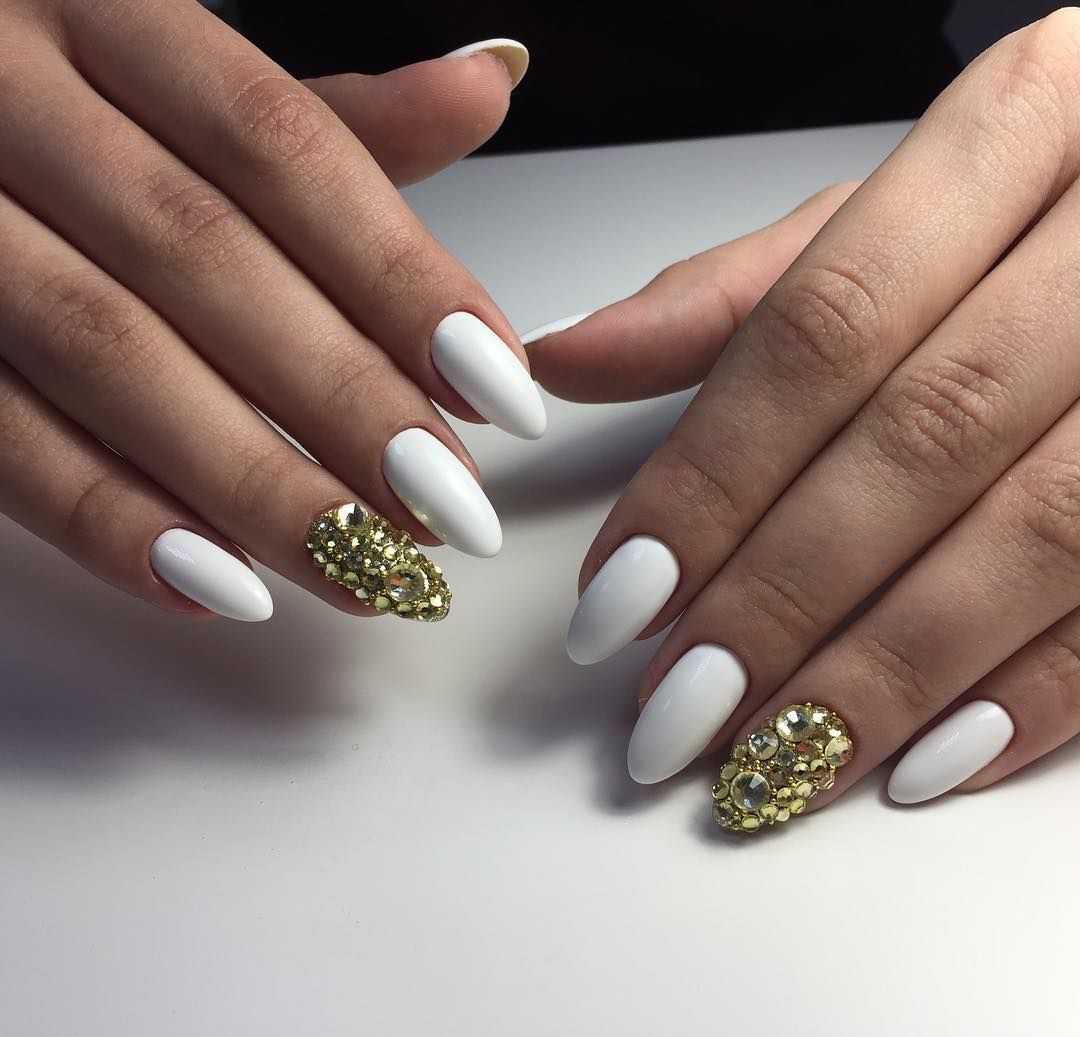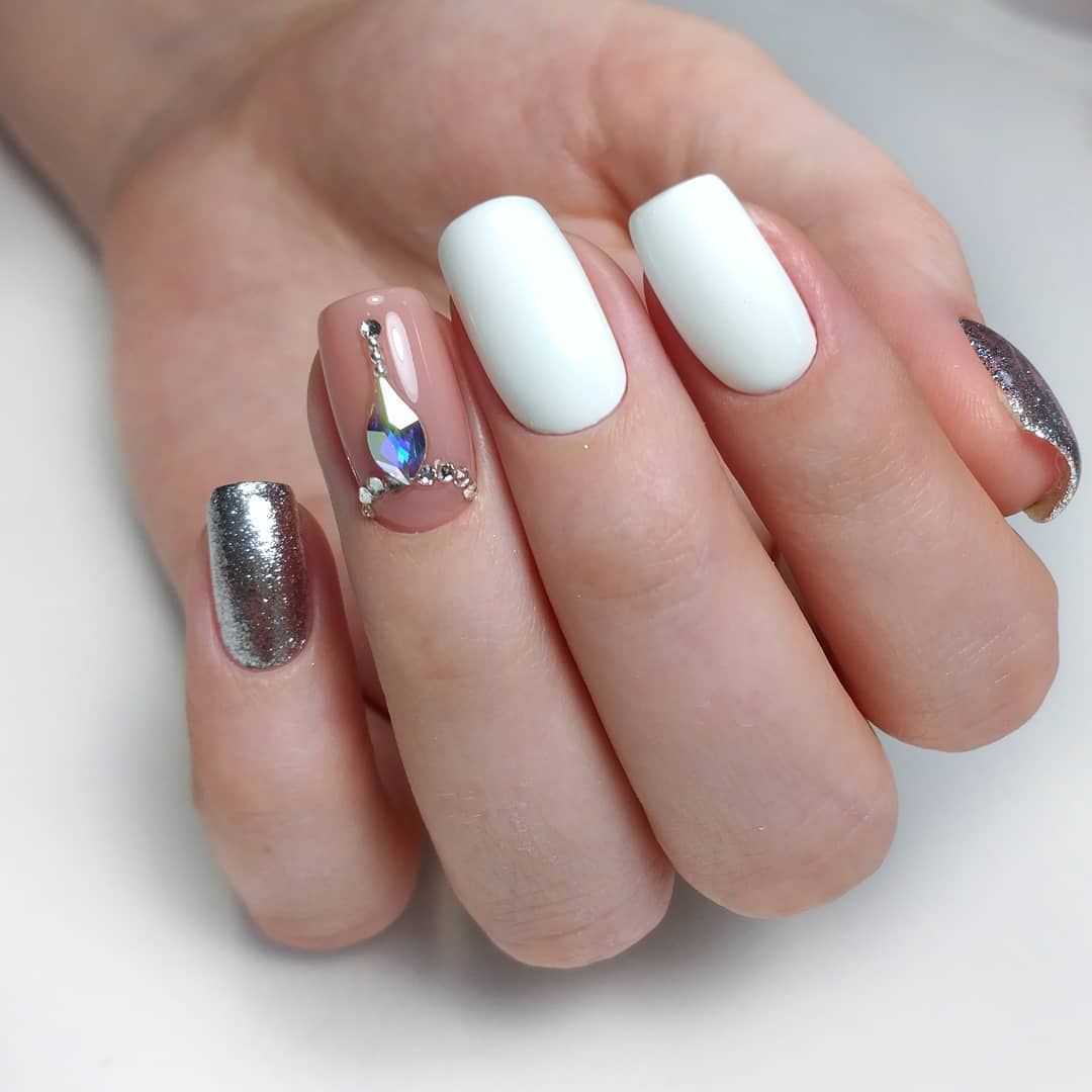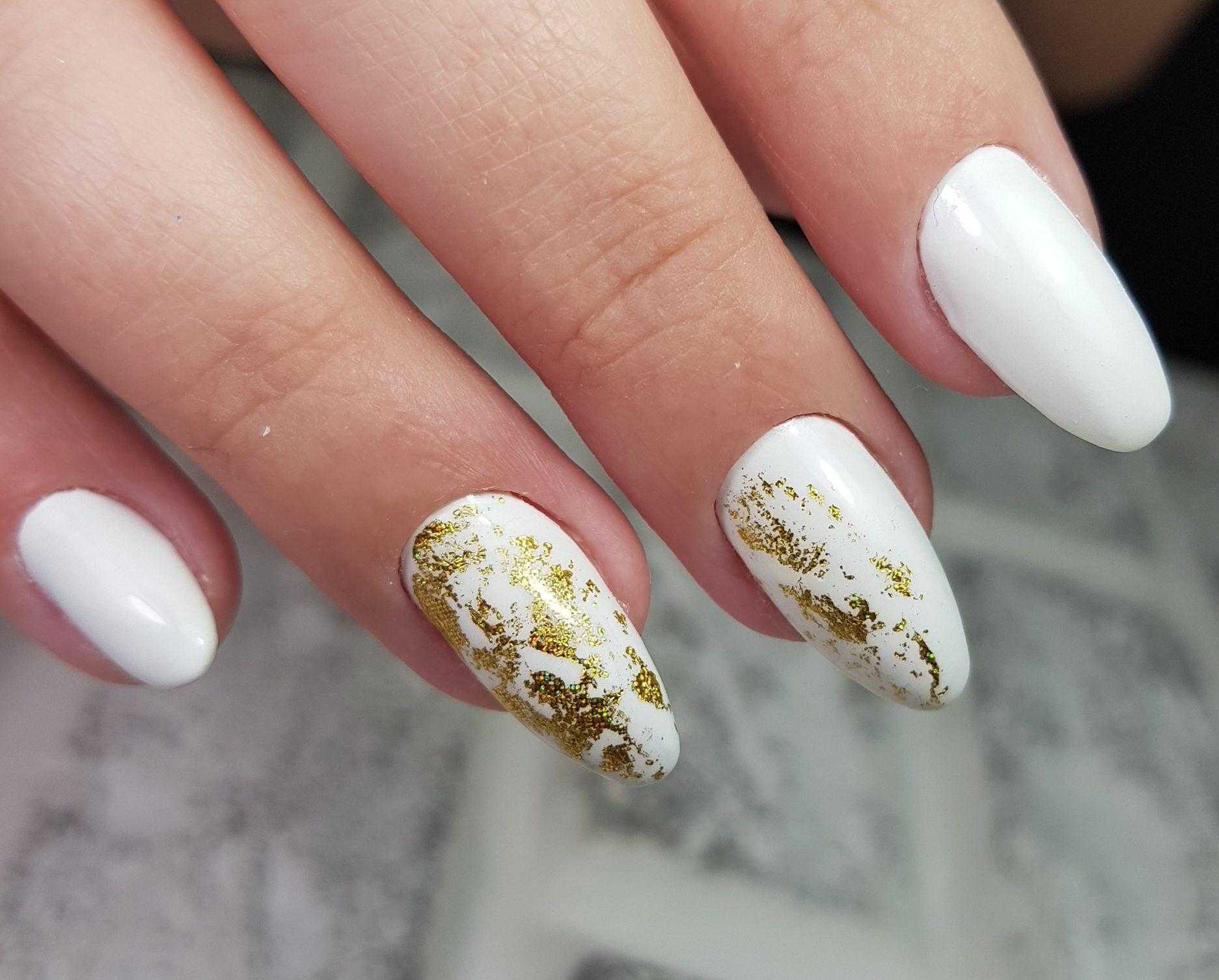 Вы можете оформить белые ногти золотом и серебром в любом стиле выполнения: