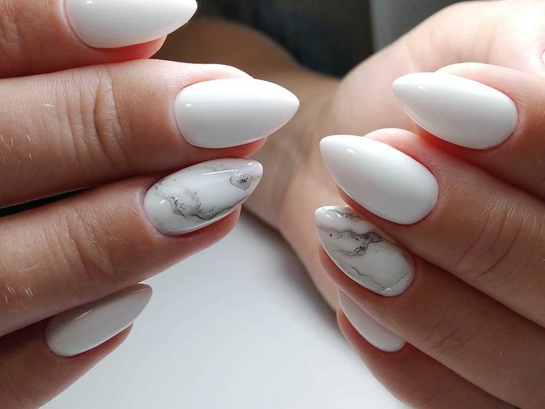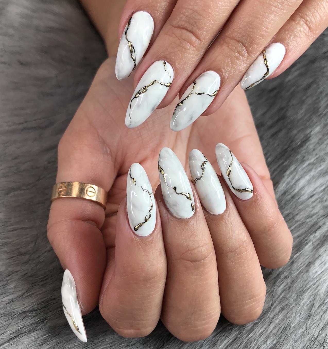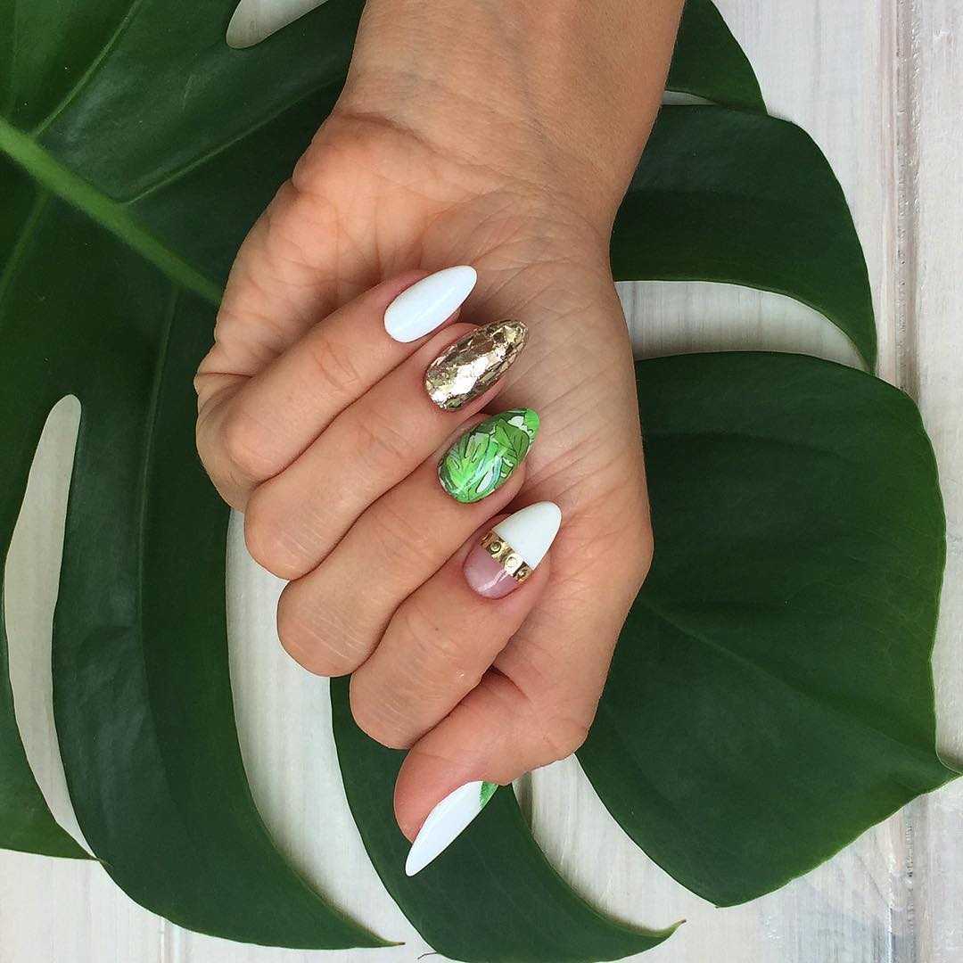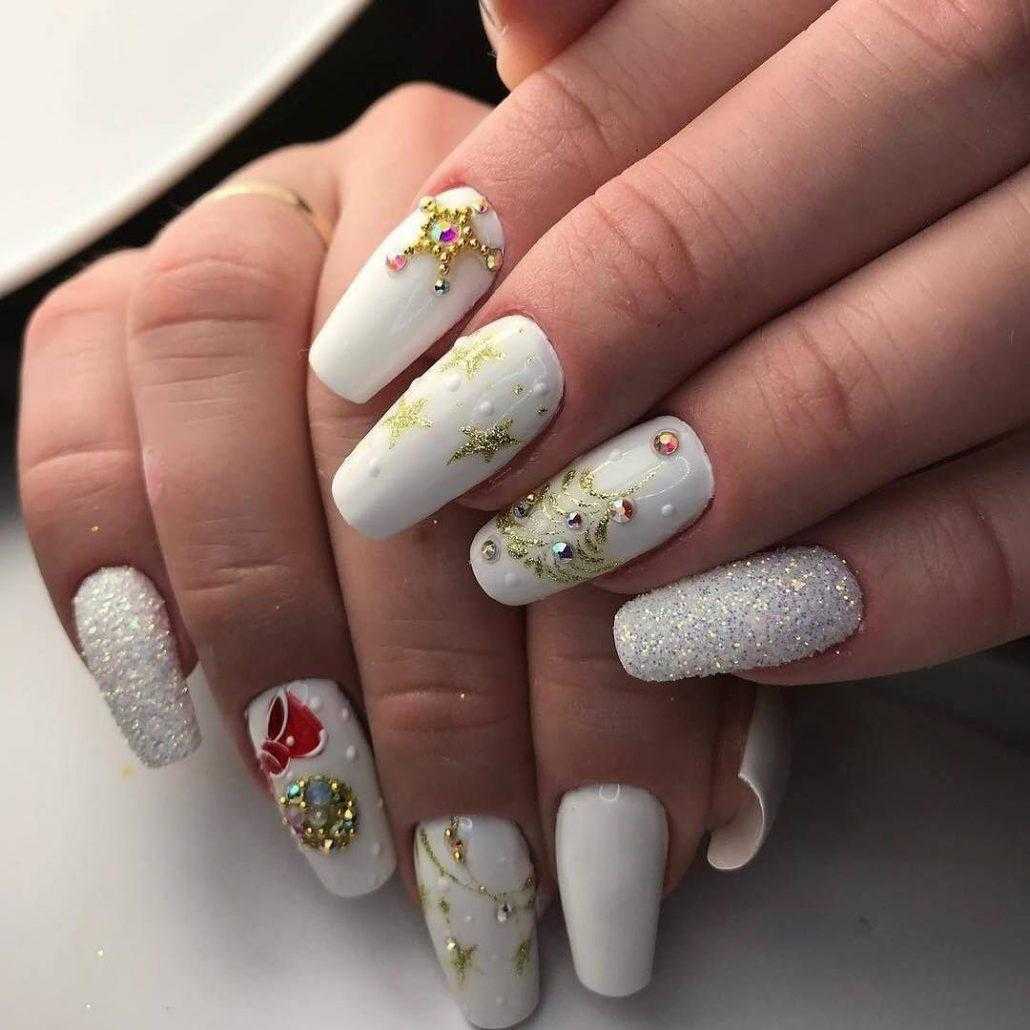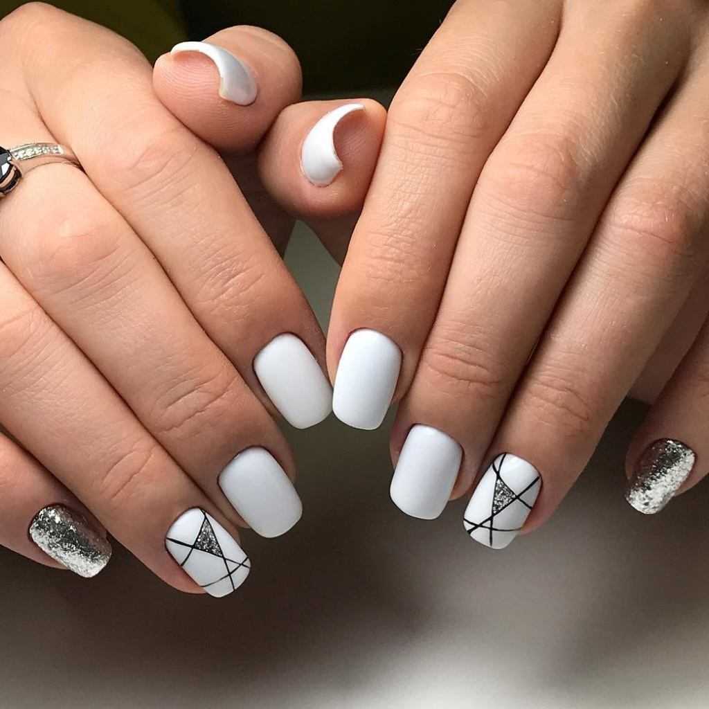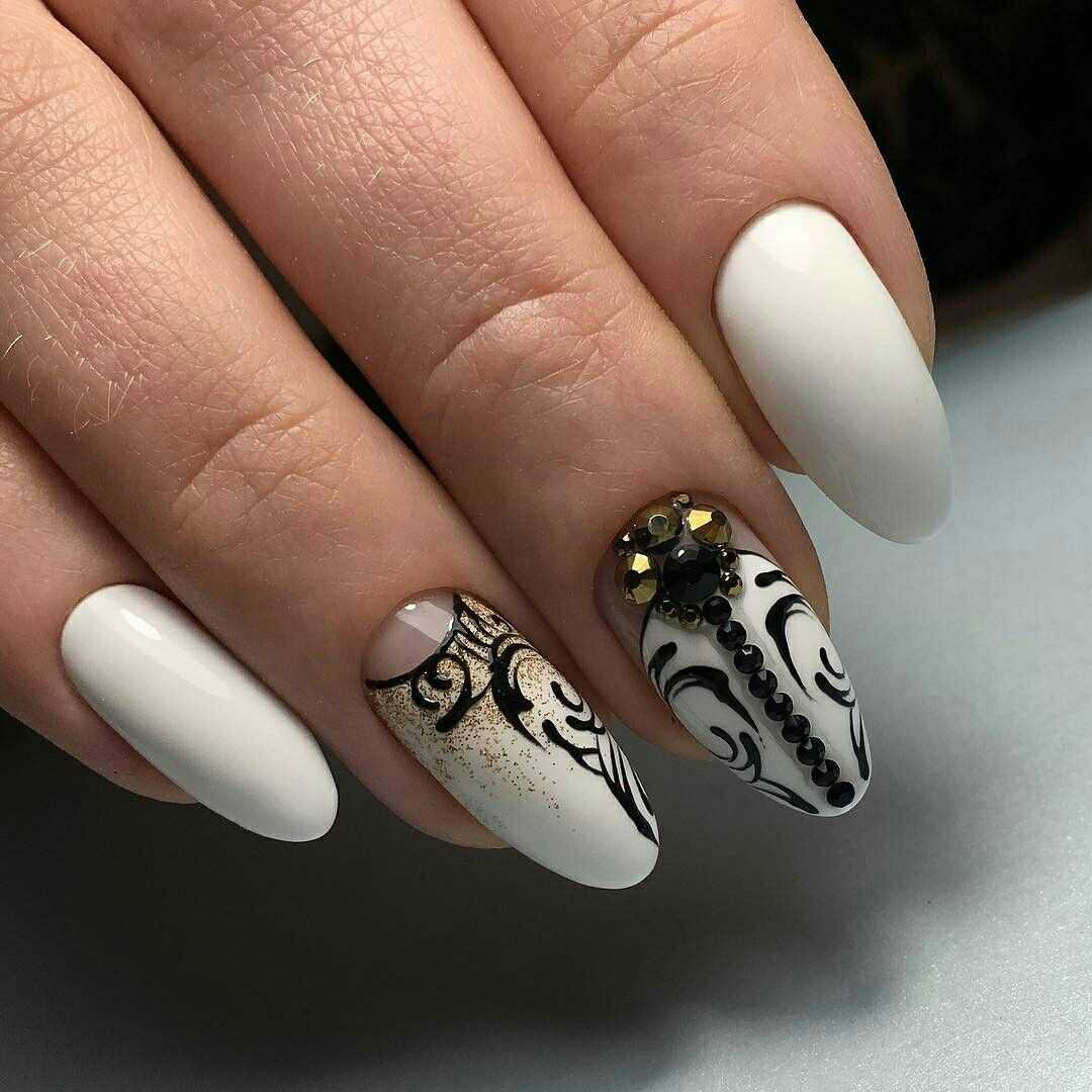 Вы можете оформить белые ногти золотом и серебром в любом стиле выполнения: