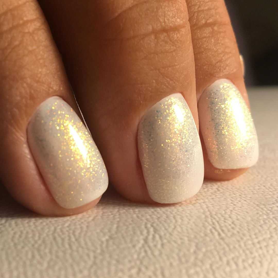 - глиттер. Средние и крупные мерцающие частички с округлыми краями роскошны на короткие ногти. Просто прокрасьте прозрачным гелем всю пластину, а по свободному краю нанесите заветные блестяшки;