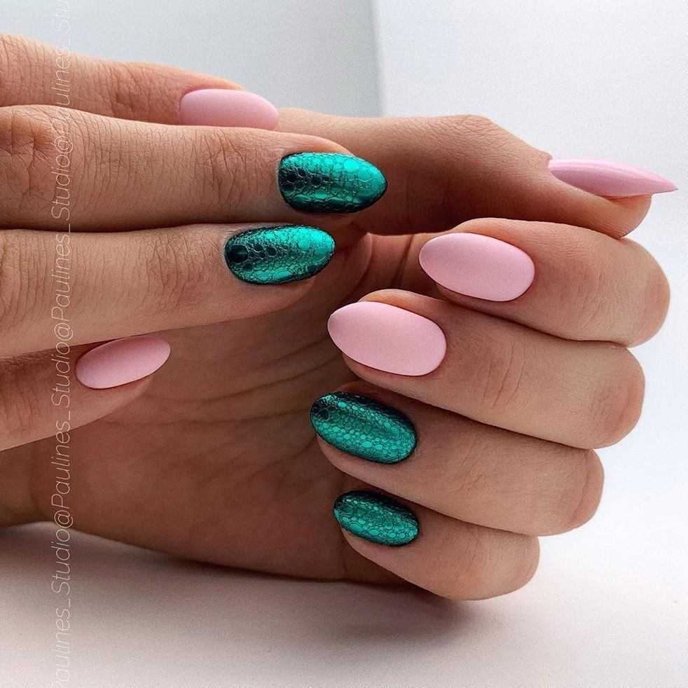 Трендом сезона 2022 будет также маникюр с металлизированным покрытием (фольга, поталь, сусальное золото). Цвет металла может быть совершенно разным, на усмотрение мастера. Сейчас применяются разные варианты, но самыми популярными на сегодняшний день являются: