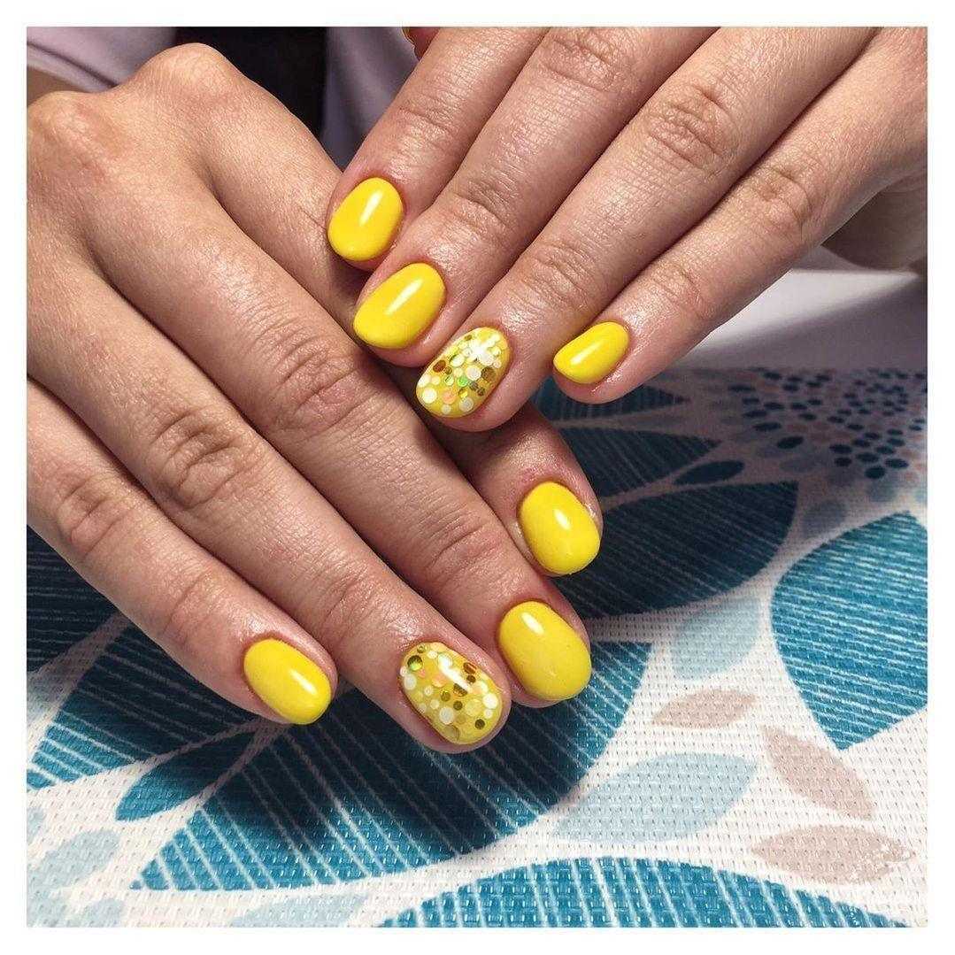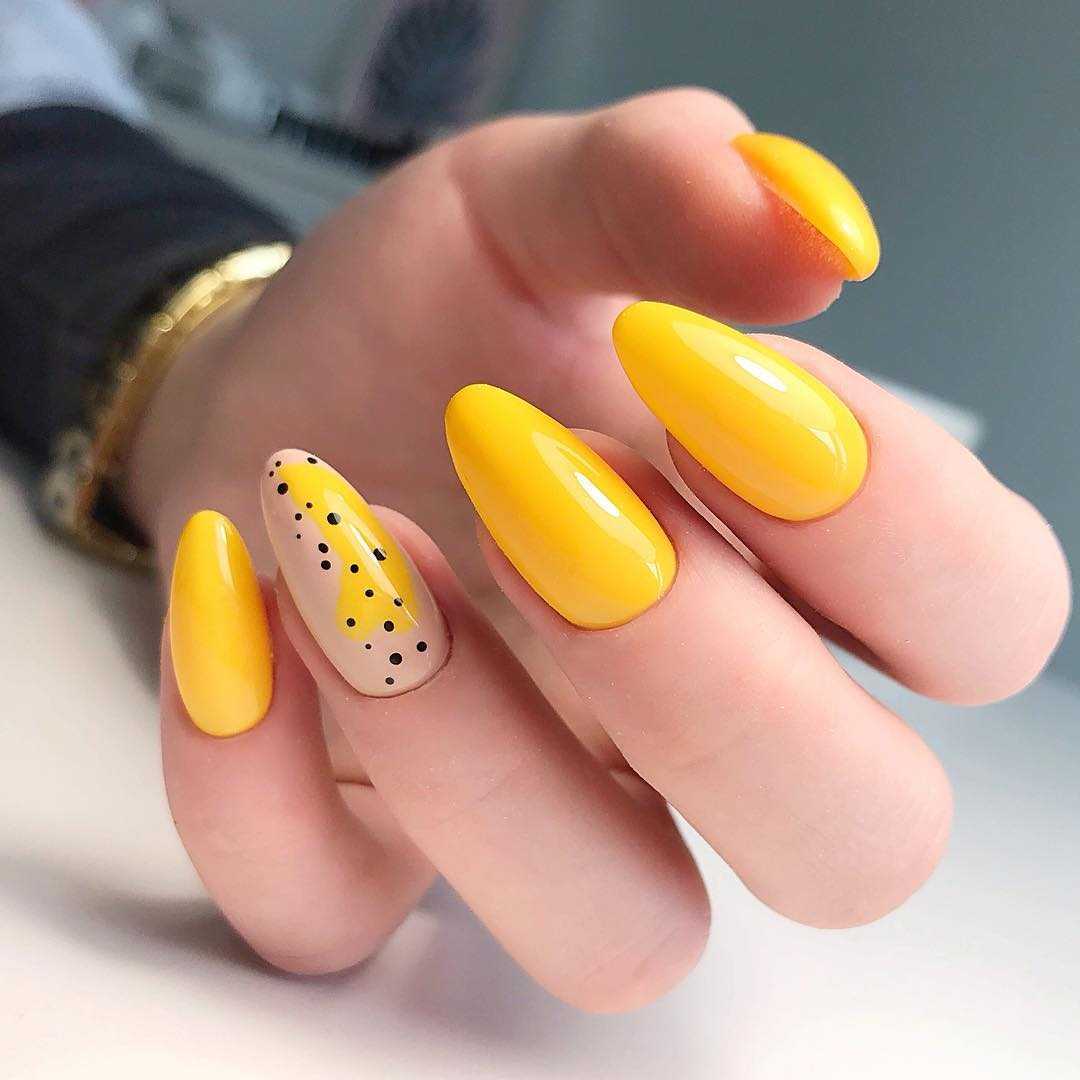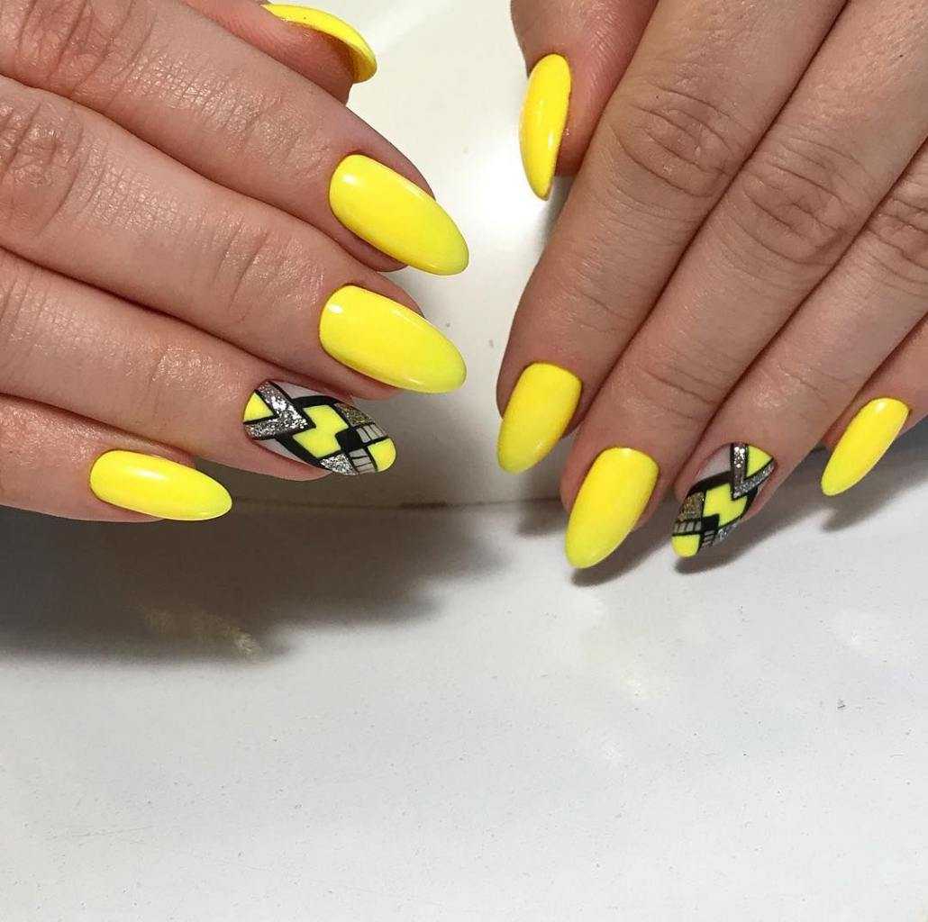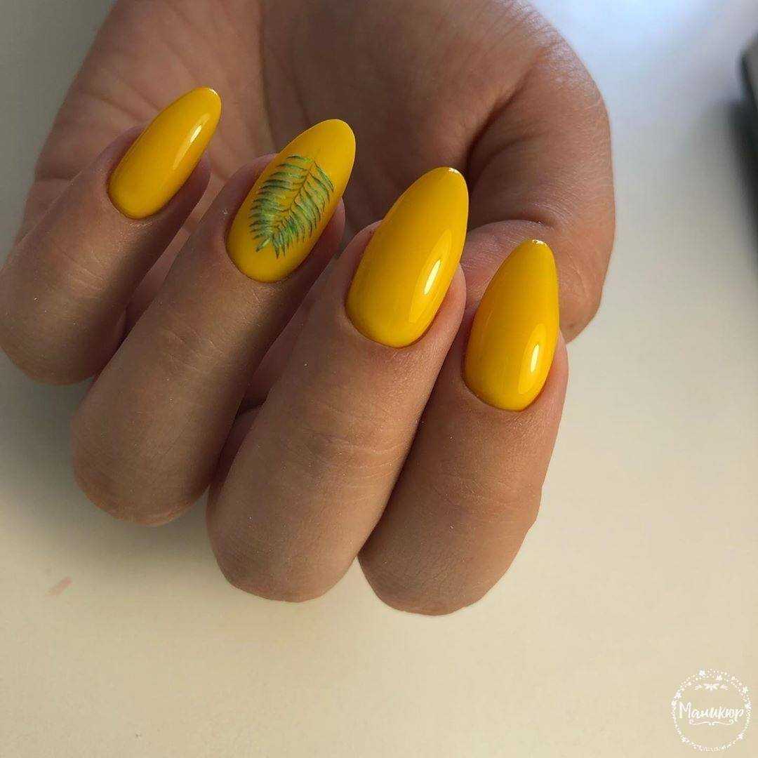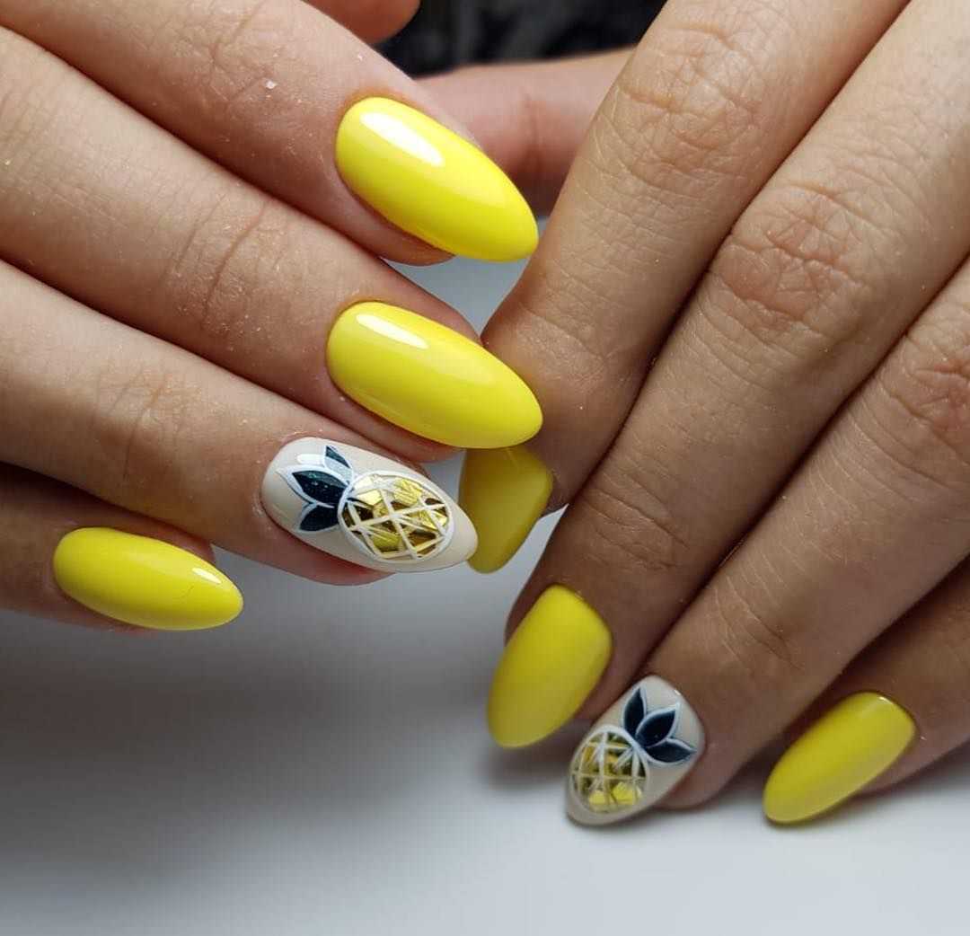Насыщенный оттенок является самым популярным выбором в летнее время. Он идеально сочетается с короткими ноготочками любых форм. В комбинации с мягким квадратом или миндалем желтый не отвлекает внимания от образа обладательницы.