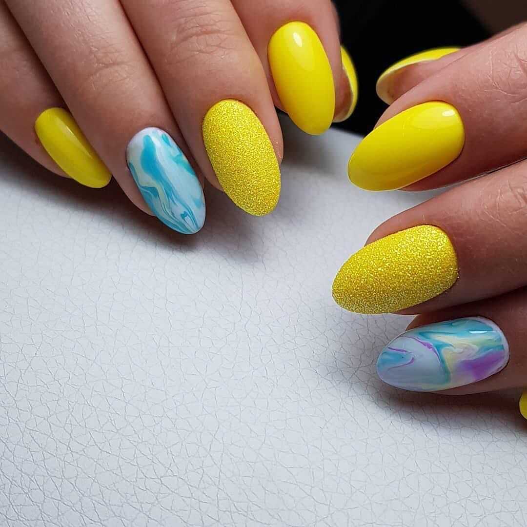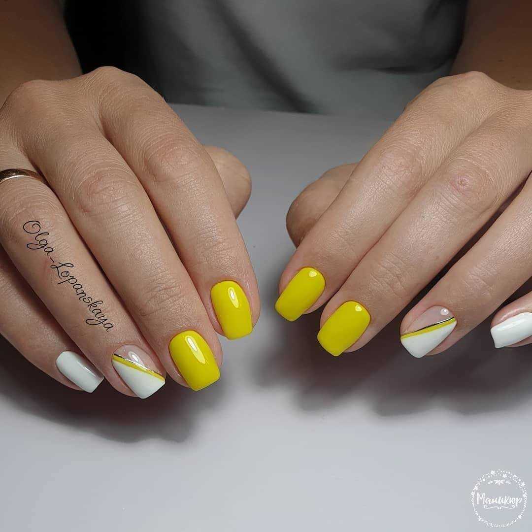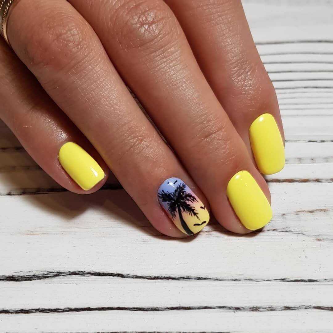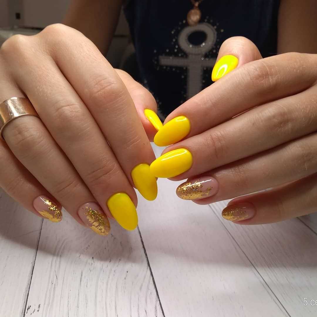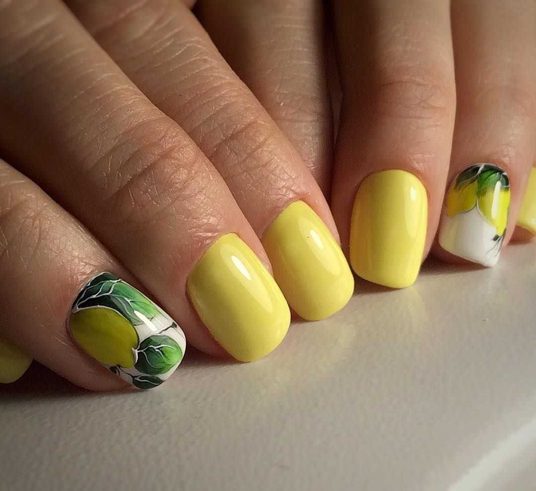 Насыщенный оттенок является самым популярным выбором в летнее время. Он идеально сочетается с короткими ноготочками любых форм. В комбинации с мягким квадратом или миндалем желтый не отвлекает внимания от образа обладательницы.