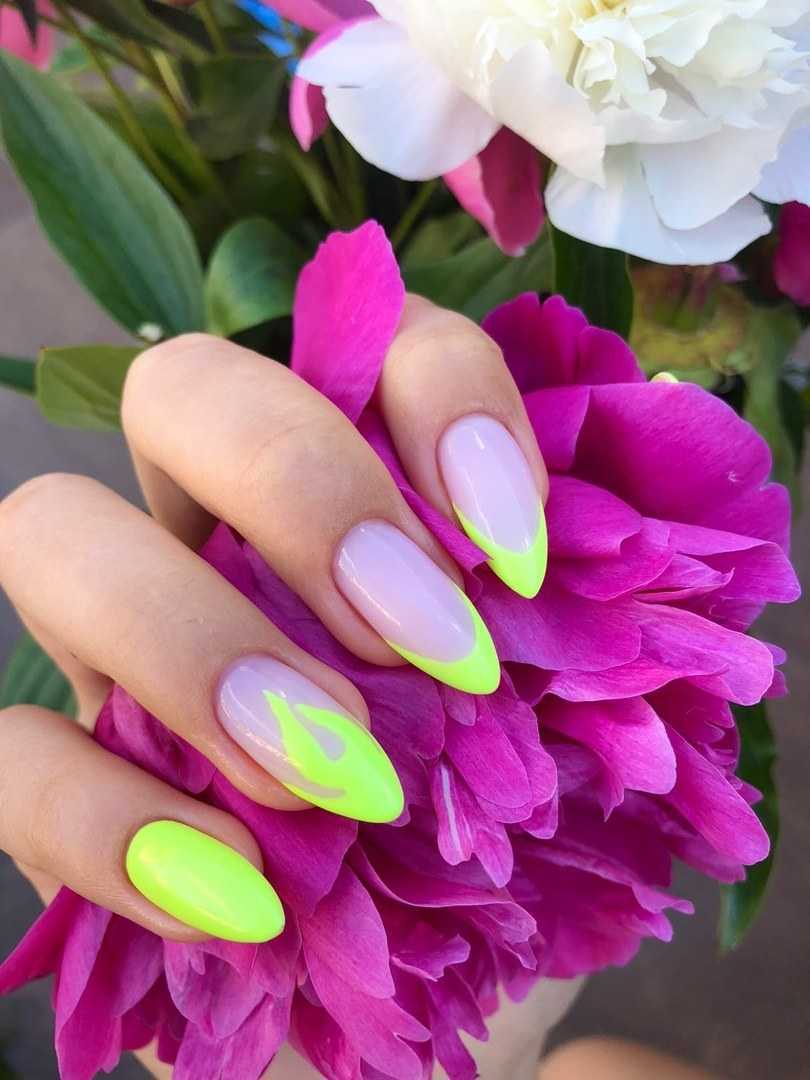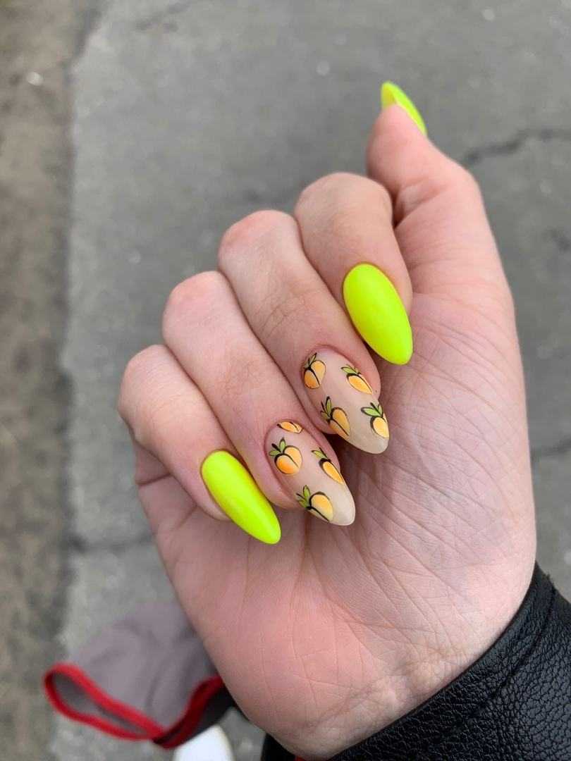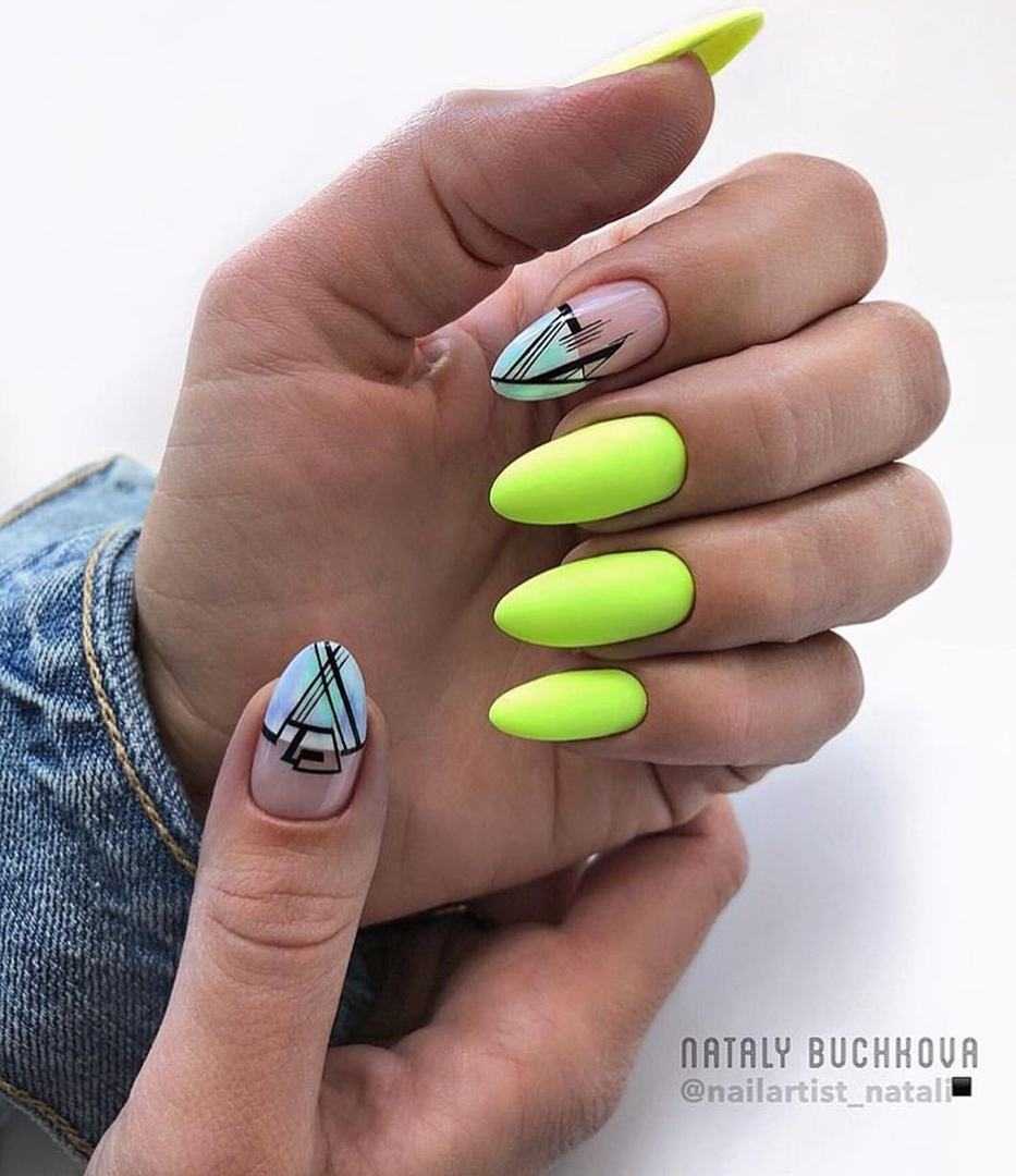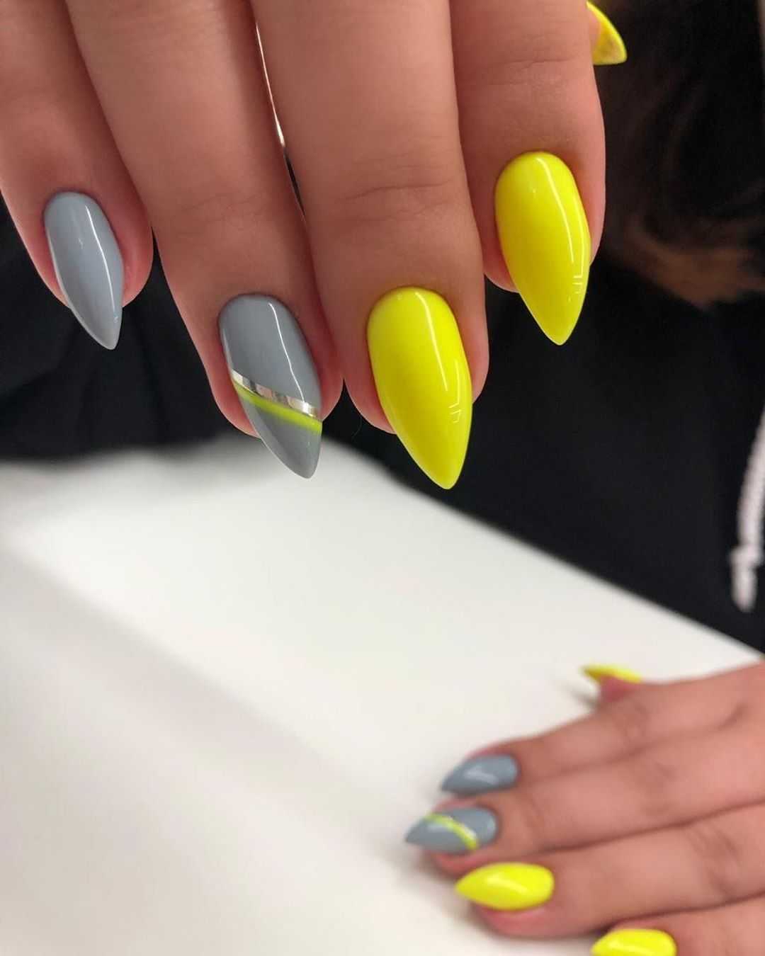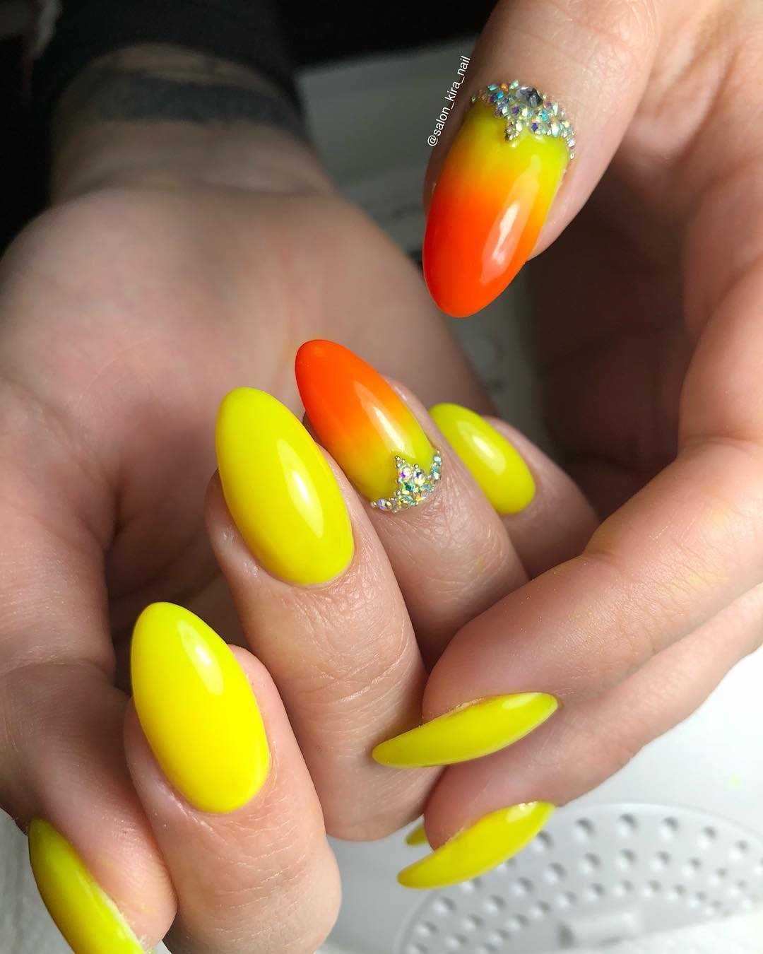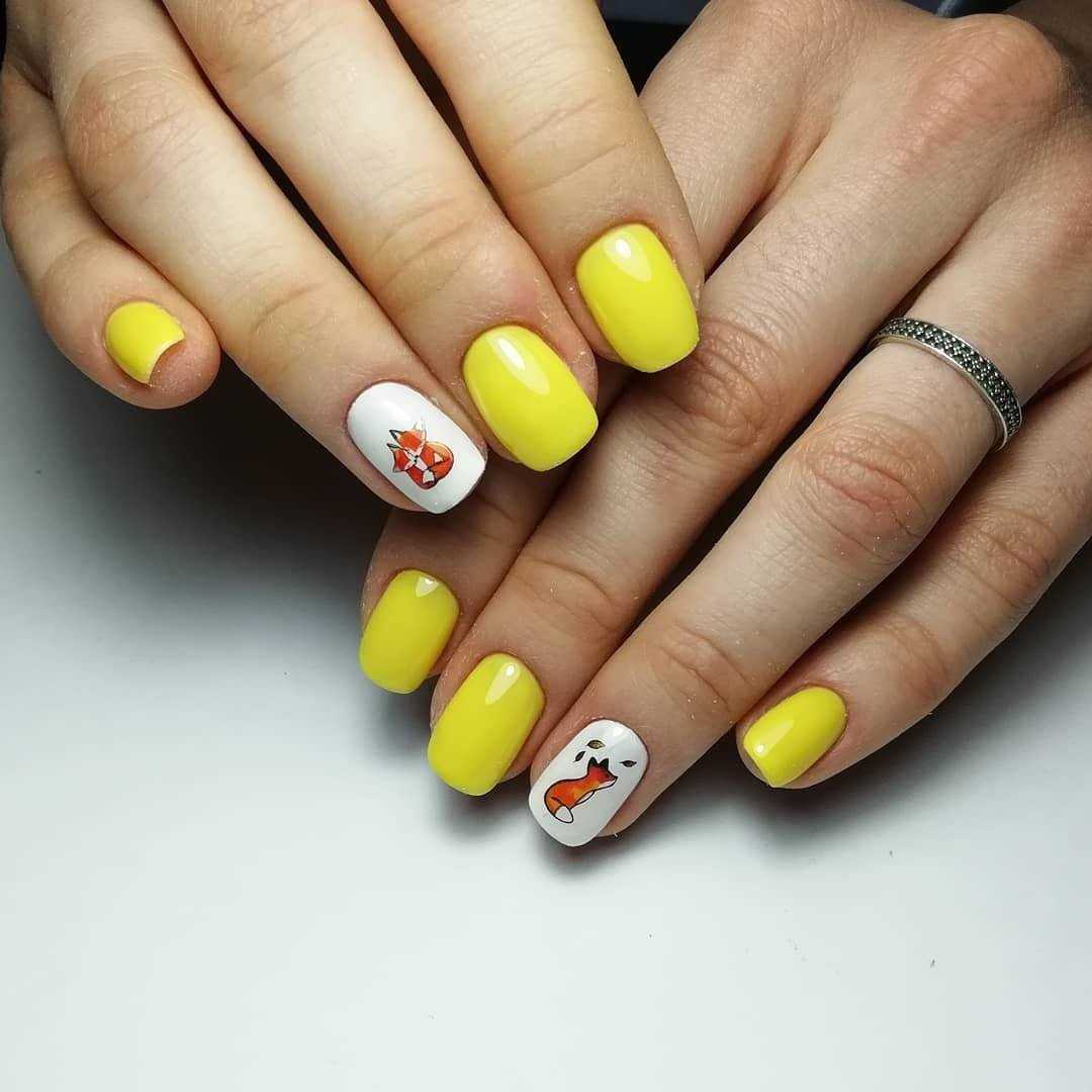 Насыщенный оттенок является самым популярным выбором в летнее время. Он идеально сочетается с короткими ноготочками любых форм. В комбинации с мягким квадратом или миндалем желтый не отвлекает внимания от образа обладательницы.