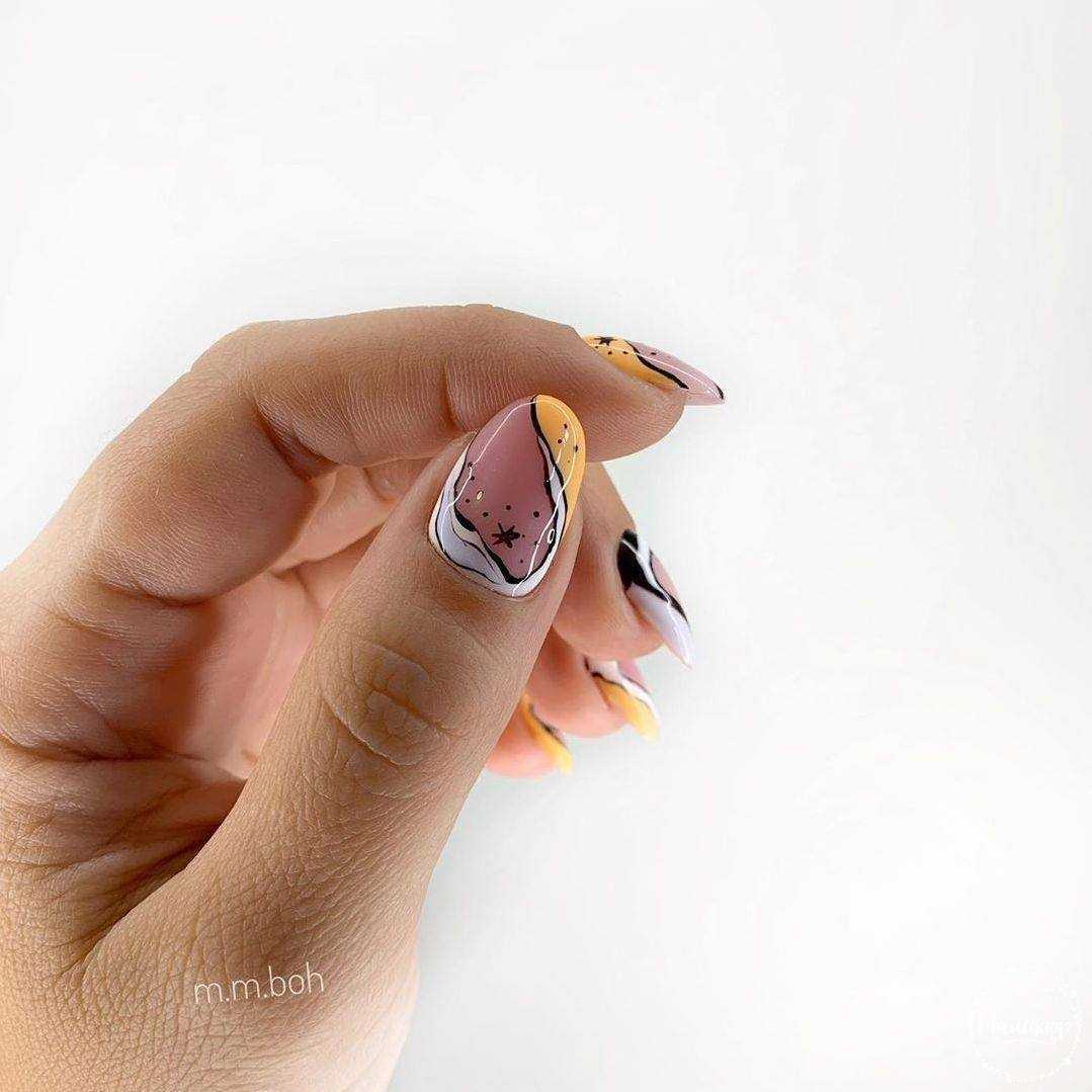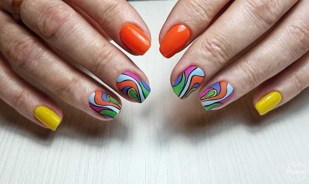 Также не актуален маникюр, когда все пальцы разные, но выполненные в одной тематике.
