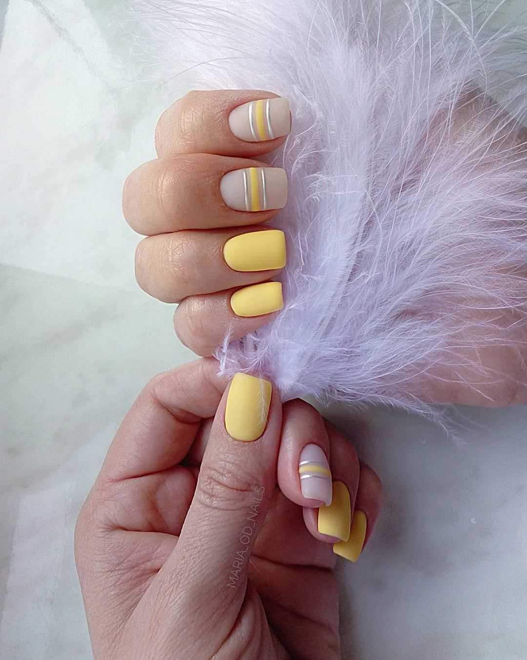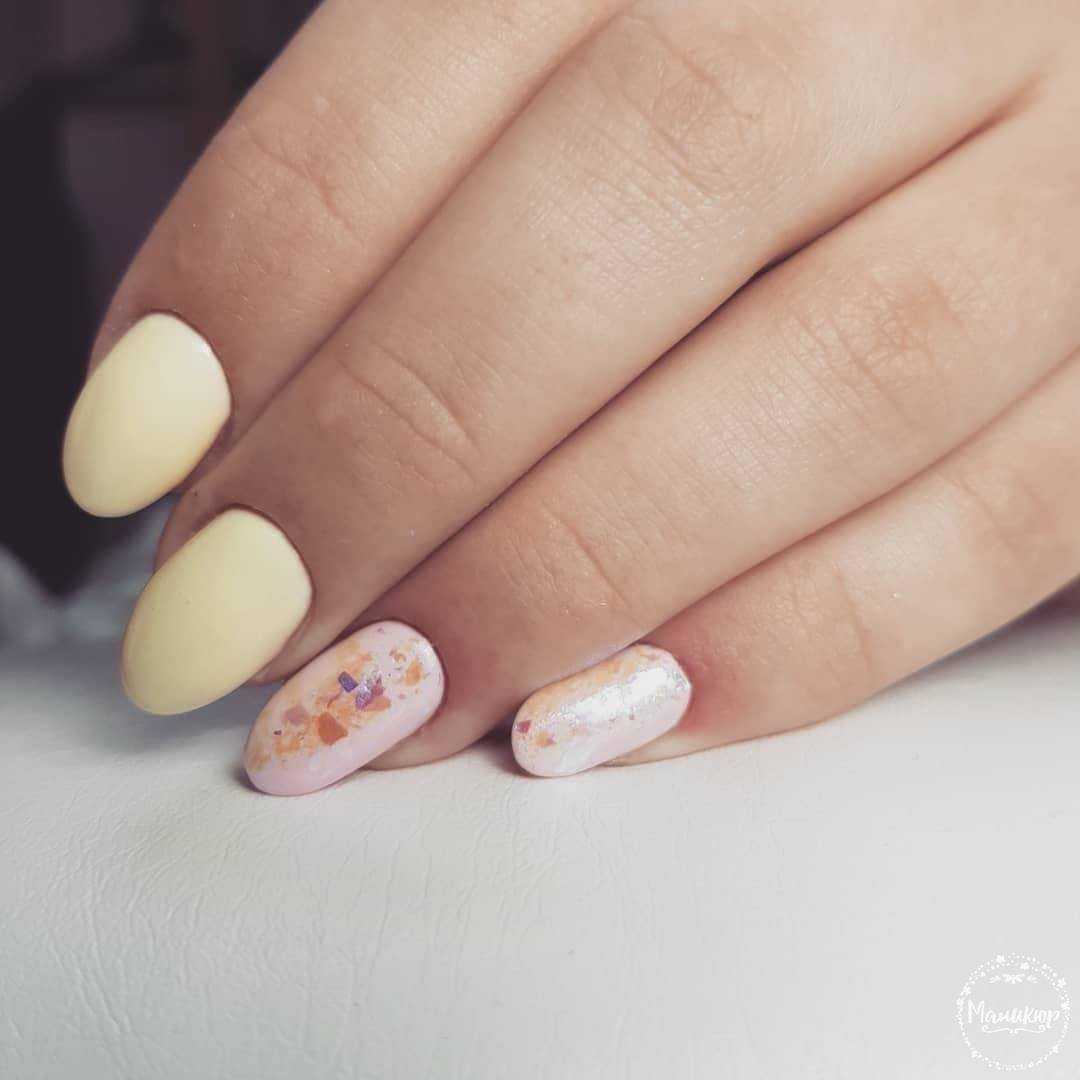 Выбрав сдержанные приглушенные оттенки желтого цвета, а также подходящие техники маникюра, можно создавать восхитительные нежные варианты дизайна ногтей.