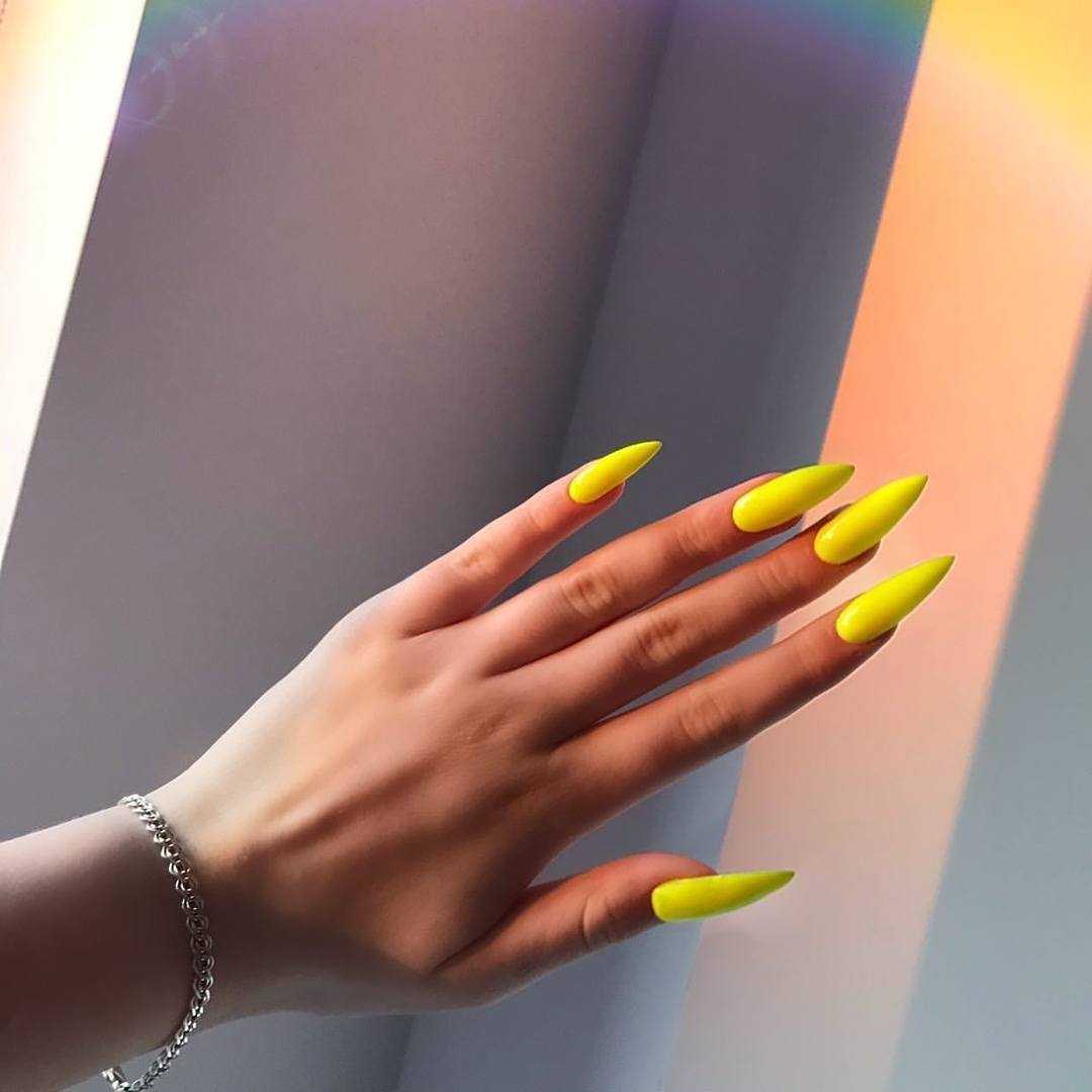 Желтый шеллак подходит всем девушкам. Главное, правильно выбрать оттенок, ориентируясь на модные тренды, привычный стиль и цветовую гамму гардероба. Выбор зависит в том числе и от формы, длины ногтей.