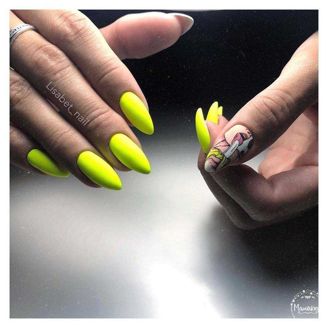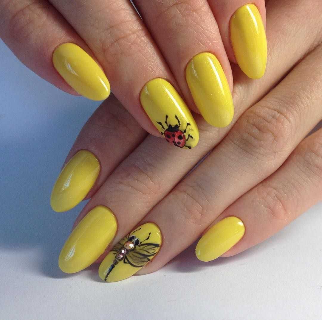 Если вы носите длинные ногти, любите лето и солнце, можете смело выбирать желтый лак для маникюра. Длинные ногти нейл-мастера рекомендуют дополнять рисунками, чтобы маникюр выглядел более выразительно.