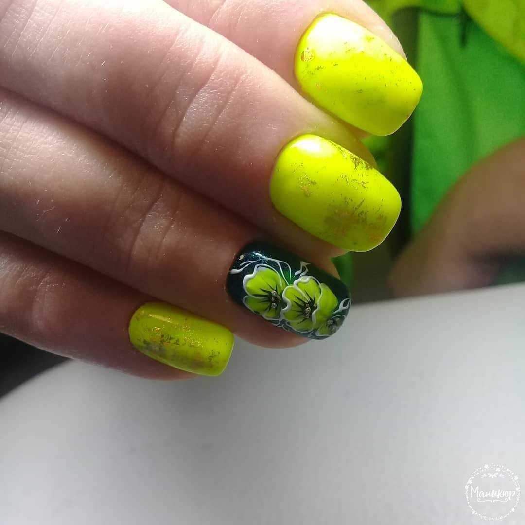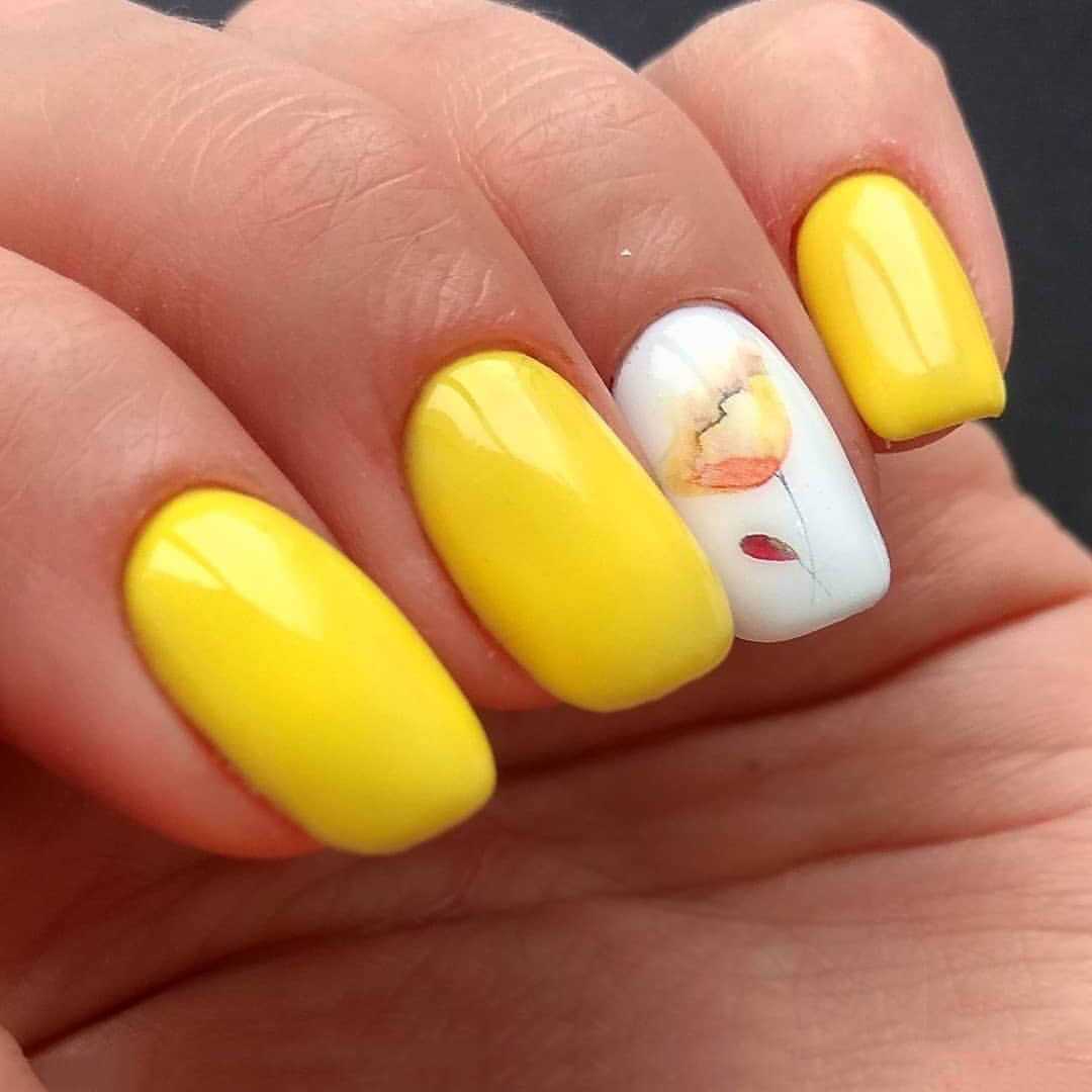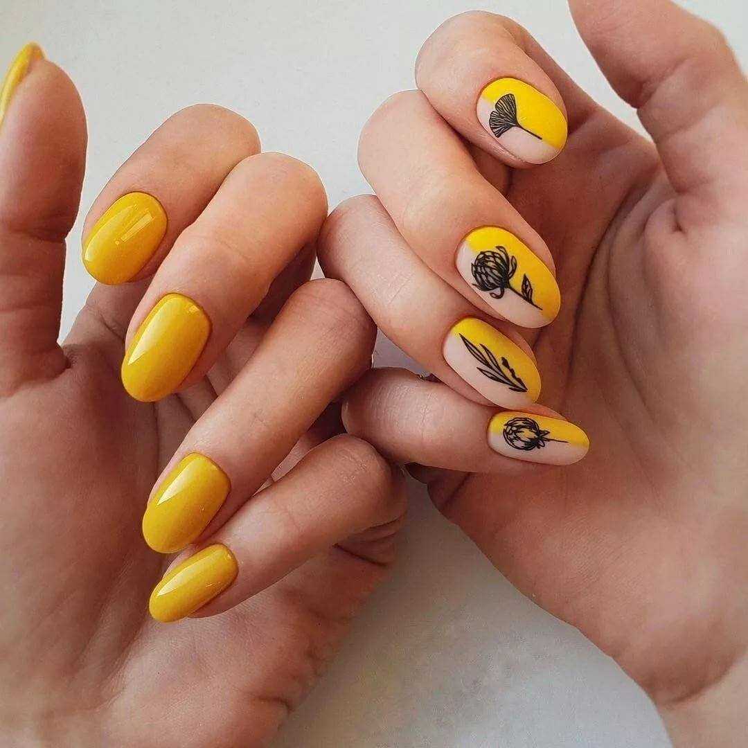 Изображения на флористическую тему очень разнообразны. Маникюр с желтыми цветами является одним из трендов текущего года.