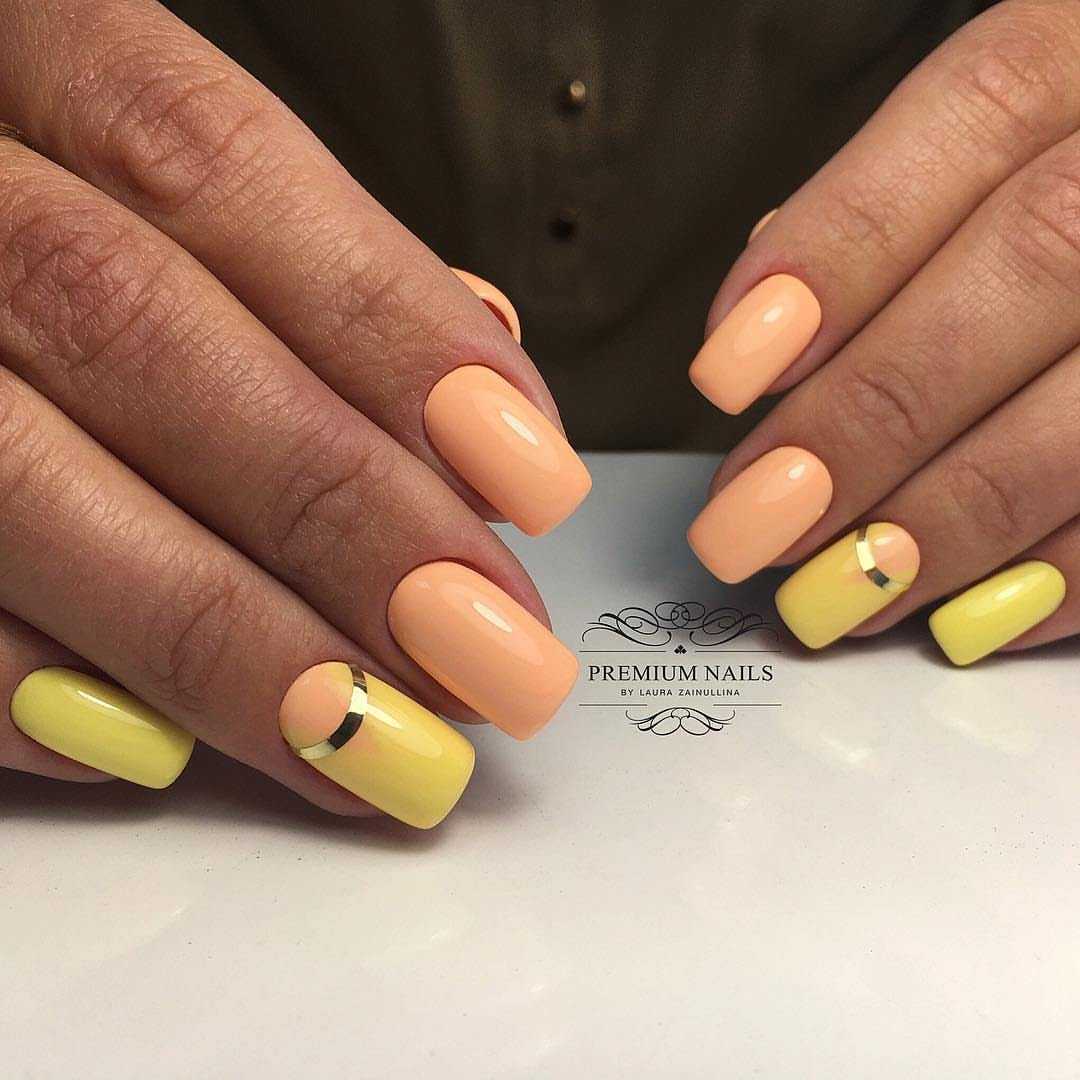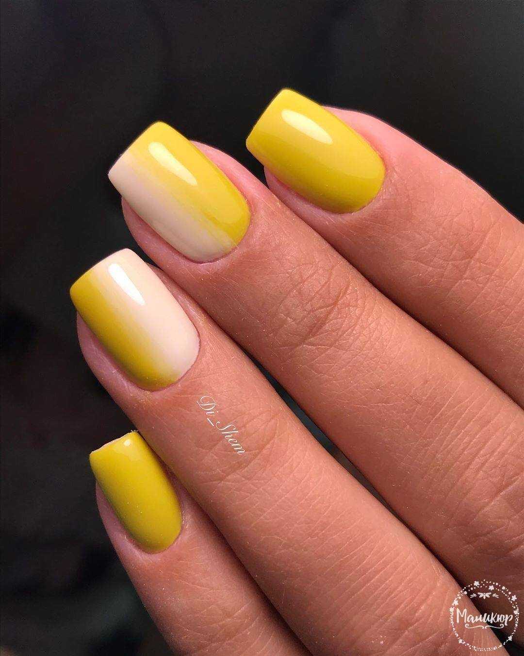 Маникюр на короткие ногти в желтых тонах выглядят естественно и просто, сдержанно и элегантно. Для создания дизайна на коротких ногтях выбирайте: